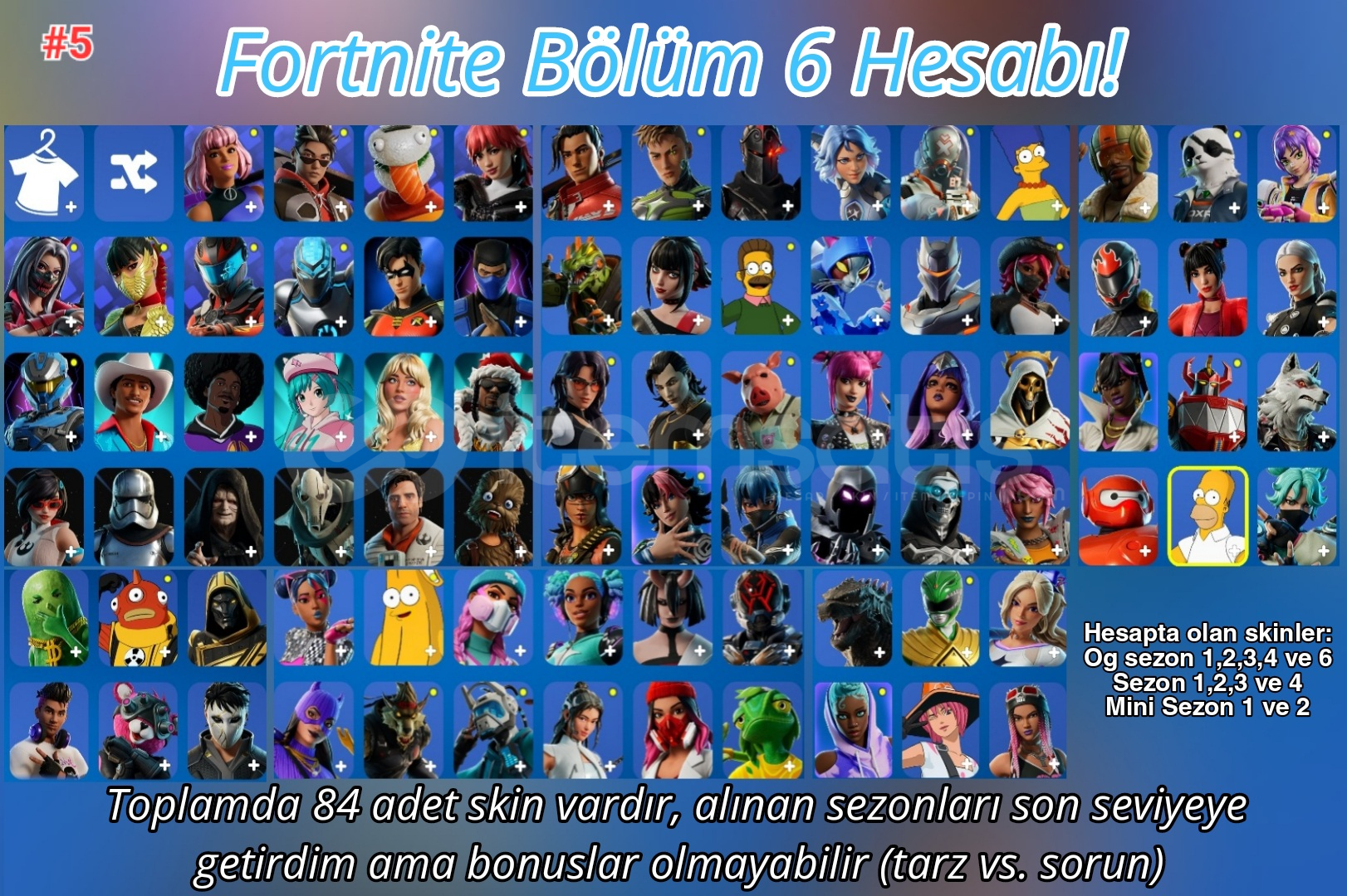 Tamamen kendi emeğimle kastığım hesaptır, oyunda chapter 6'yı kaçırmış arkadaşlarım için mükemmel bir fırsat hatta epic hesabının