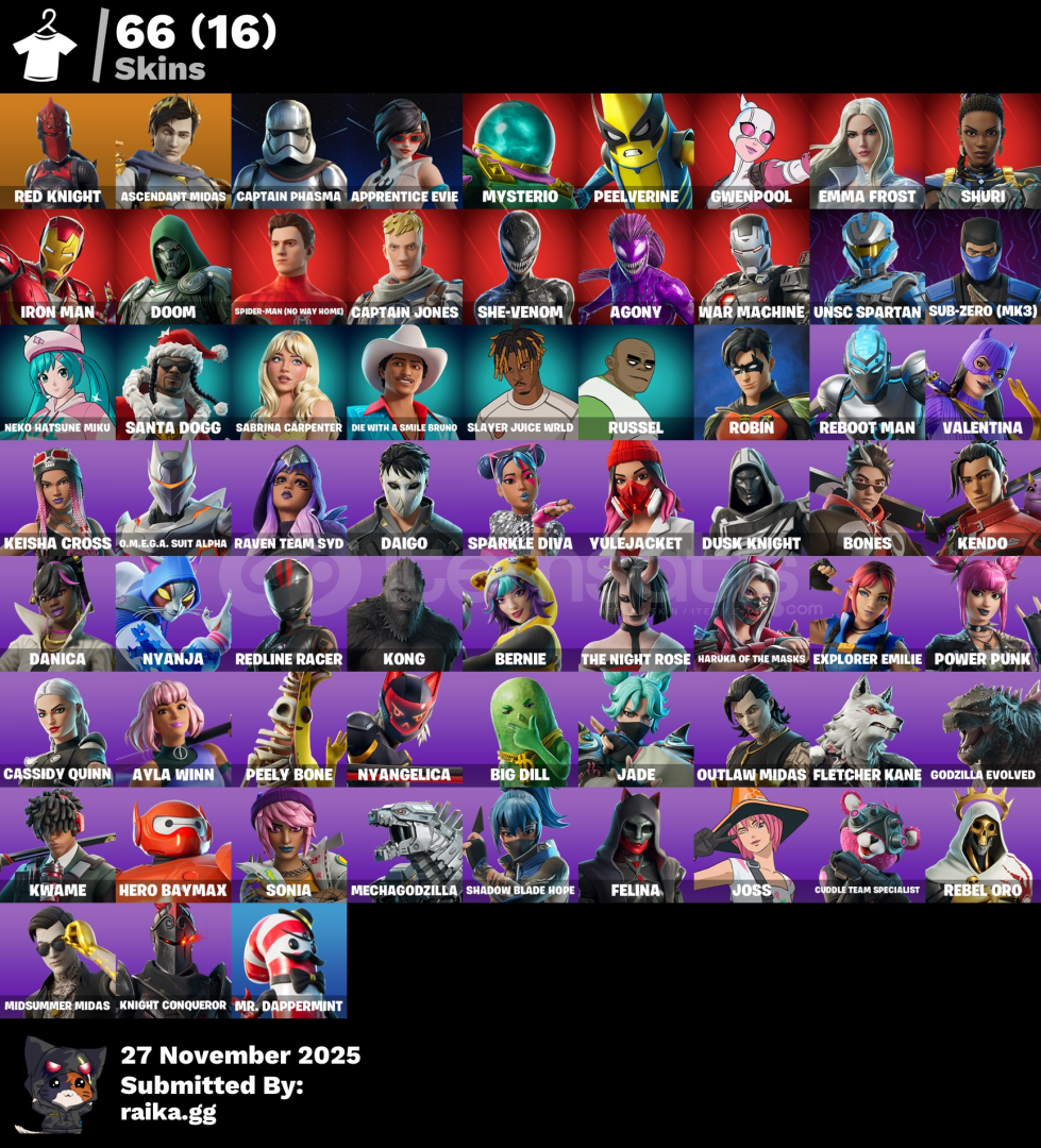 • IRON-MAN, DOOM, SABRINA CARPENTER, SPIDERMAN (NO WAY HOME), ŞÖVALYE MİDAS, YAZLIKÇI MİDAS GİBİ BİRÇOK NADİDE İTEMLER BULUNMAKTADIR