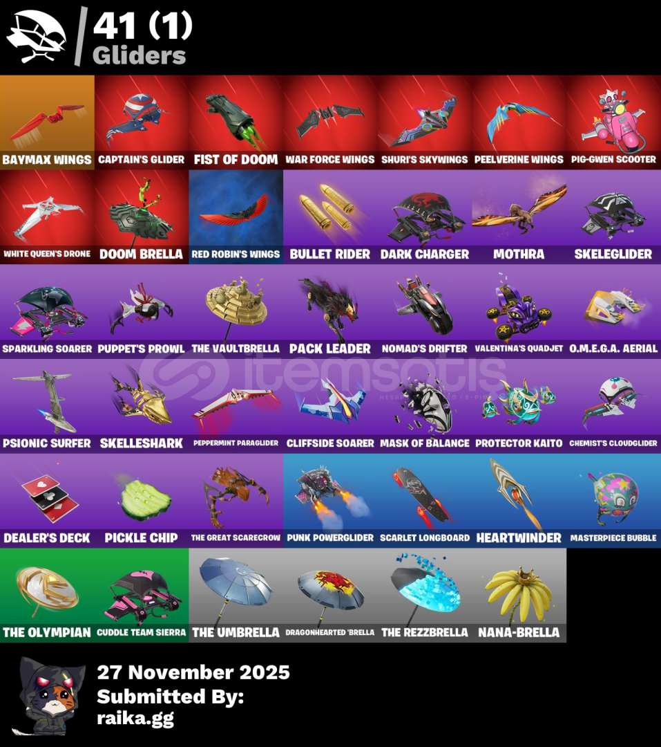 • Hesapta 66 Skin, 84 Sırt Süsü, 64 Kazma, 50 Dans, 41 Planör bulunmaktadır.