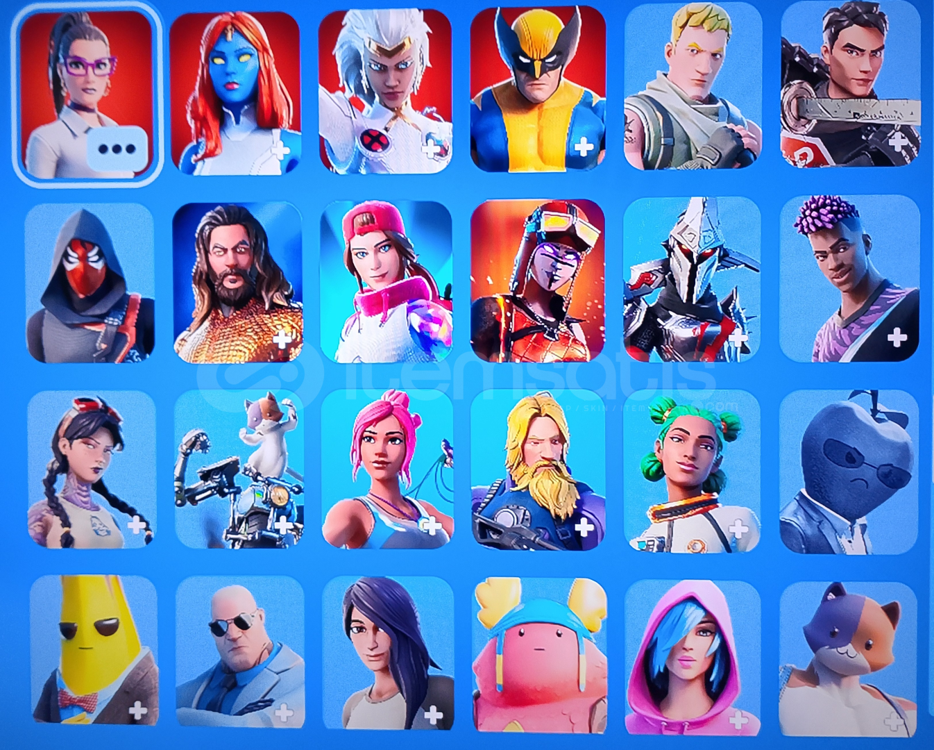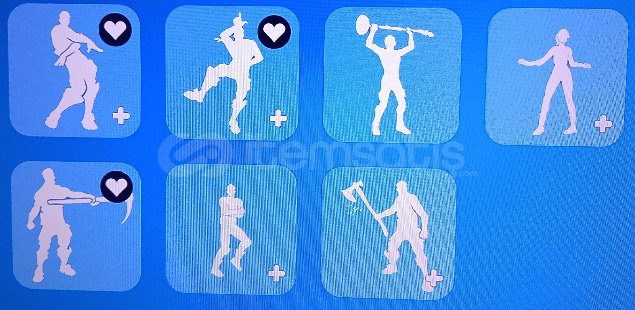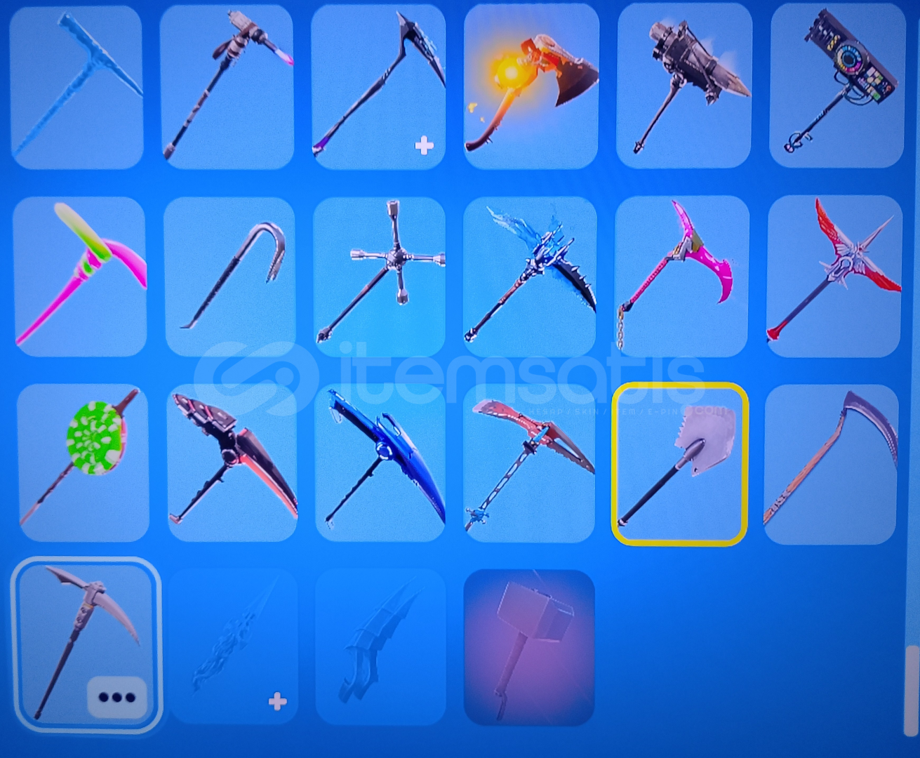 Hesaptaki bazı skinler (toplam 261 skin) Kratos, lara croft, tony stark, ragnarok, ice king, midas, neymar, ghoul trooper, Ch3 spidermanHesaptaki bazı kazmalar(toplam 268 kazma) Leviathan axe Mjolnirİce breakerToplam 824 emote varTake the L var