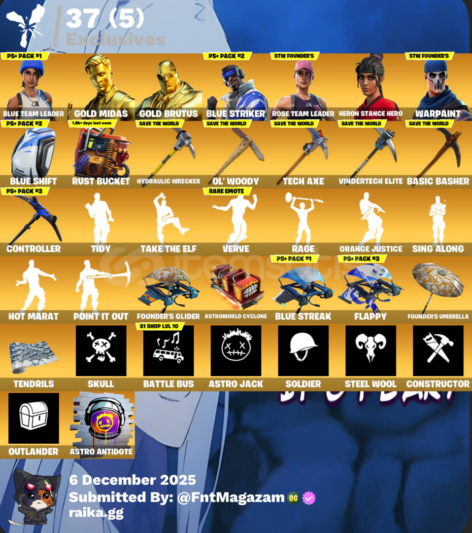 ✔Og Stw✔Gold Midas✔OG BatllePass✔En Nadir Emotelar➤Hesap Teslimi:✔Mail İle Teslim.✔Garantide veriyoruz herhangi bi sıkıntı durumunda burdayız.✔Hesap Otomatik Teslimattır direkt bilgileri alıp kendi üstünüze Geçirebilirsiniz!