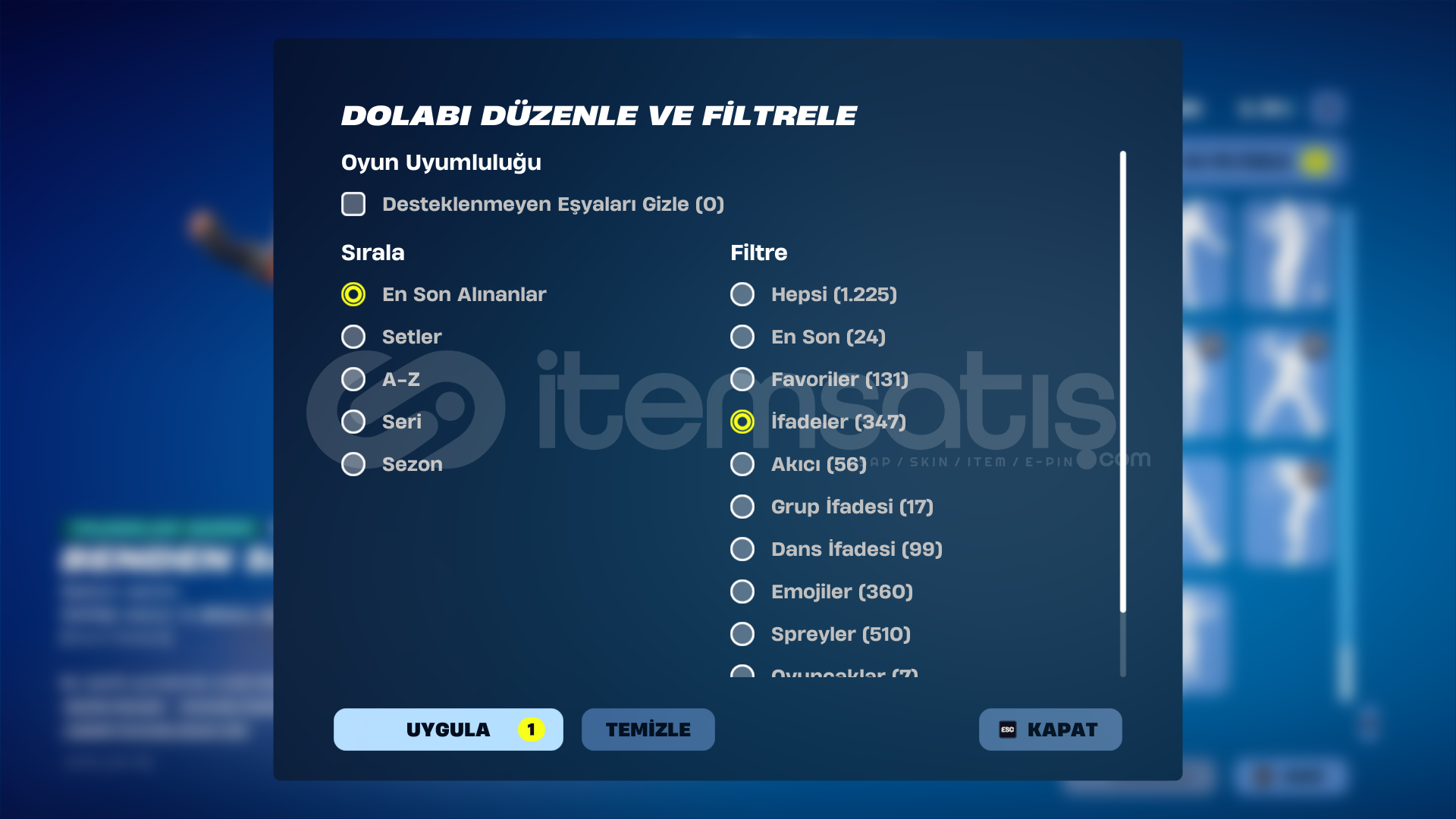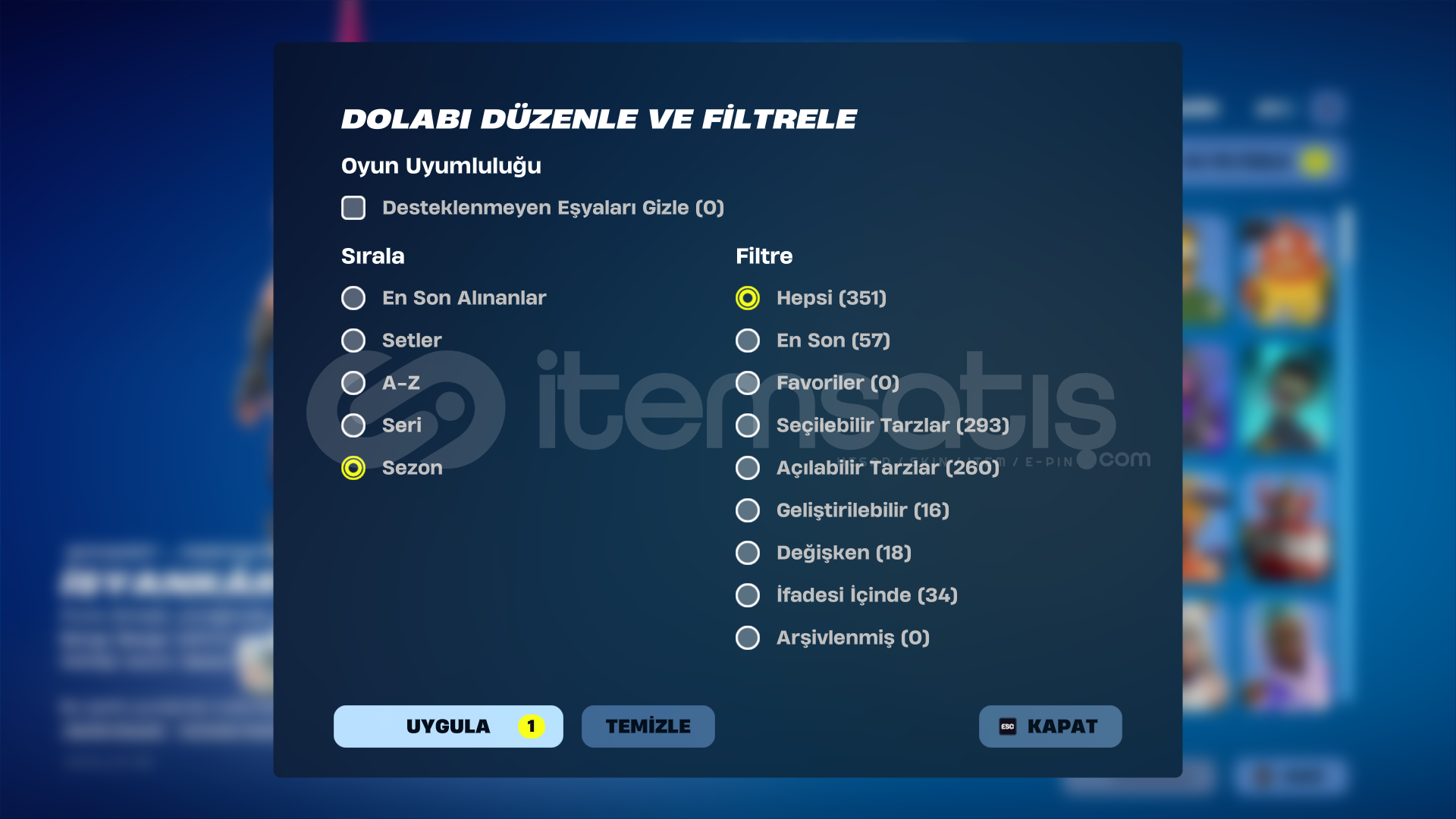 Fortnite hesap satışı kategorisinde random / mail değişmeyen hesapların satışını yapmak yasaktır. Tespiti halinde ilanınız kapatılır ve 2. tekrarda hesabınız tamamen kapatılır.