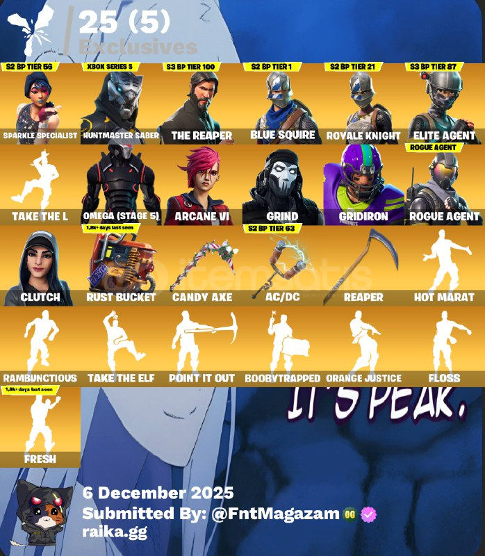 ✔Huntmaster Saber✔Sparkel Specalist✔The Reaper✔Grind,Clutch✔OG BatllePass✔En Nadir Emotelar➤Hesap Teslimi:✔Mail İle Teslim.✔Garantide veriyoruz herhangi bi sıkıntı durumunda burdayız.✔Hesap Otomatik Teslimattır direkt bilgileri alıp kendi üstünüze Geçirebilirsiniz!