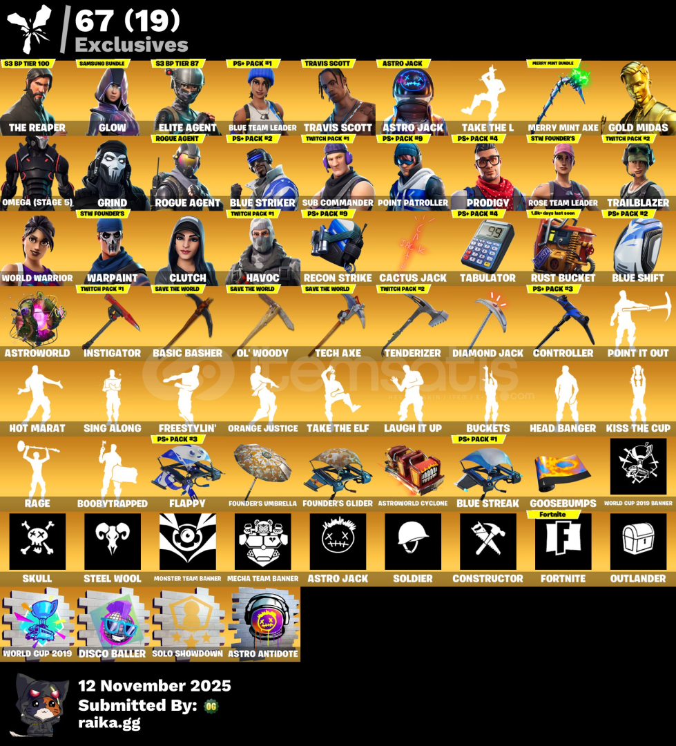 HESABIMIZ DOLULAR DOLUSU EFFSAAAANEEEEEEE BİR HESAPTIR!S3-S4-S5-S6-S7-S8-S9-S10 VE DAHA ONLARCA BATTLEPASS FULL+FULL!OG STW MEVCUT - TRAVIS SCOTT VE ASTROJACK SKINLERI VE KAZMASI MEVCUT!MERRY MINT AXE MEVCUT! - WORLD CHAMPION SKINI MEVCUT!İLK BAŞLANGIÇ PAKETLERİ VE TWITCH'E ÖZEL PAKETLER MEVCUT!HESABIMIZDA 2300 VBUCKS BULUNMAKTADIR. (STW İLE SINIRSIZ KASABİLİRSİNİZ!)VE DAHA ONLARCA EFSANELEŞMİŞ KARAKTER HESABIMIZDA MEVCUTTUR...