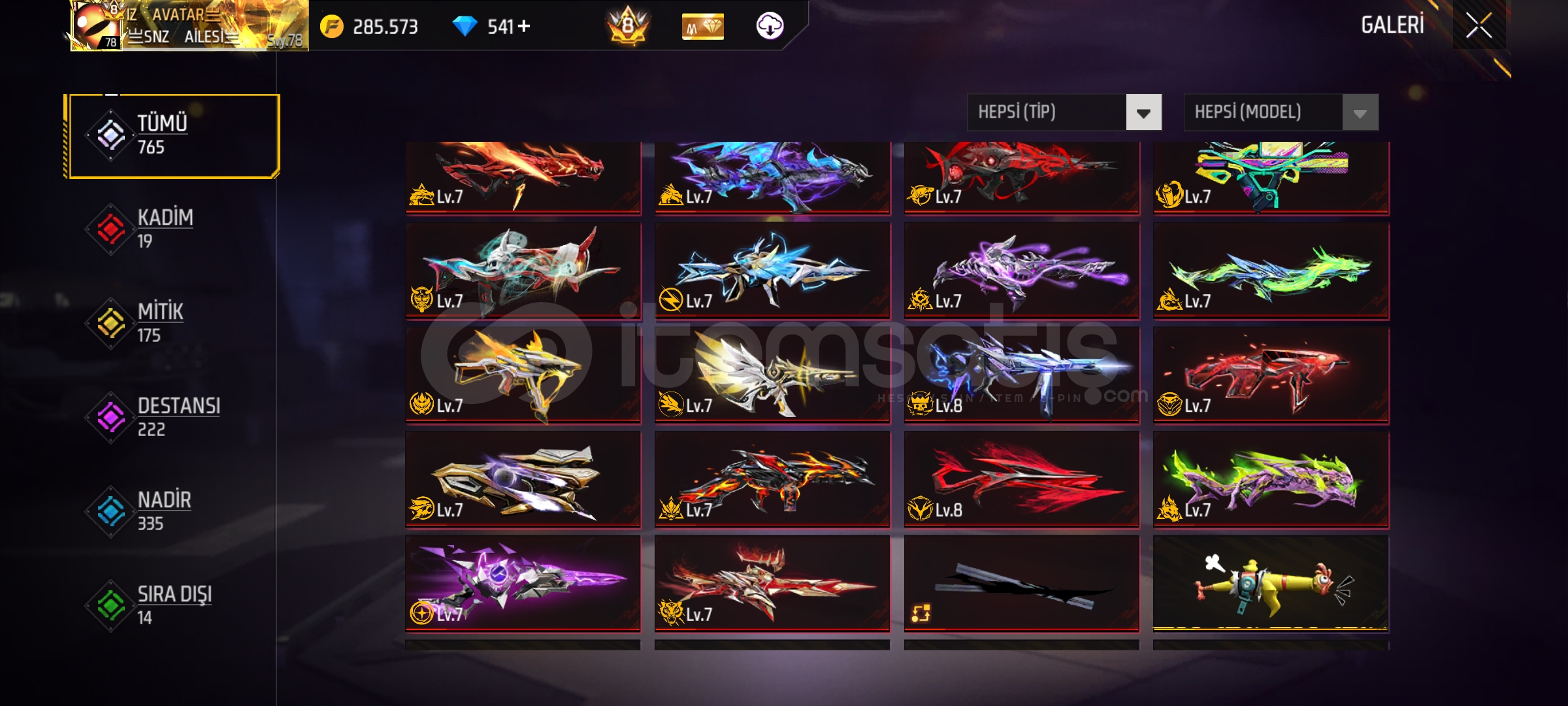 Hesap 7 yaşında 18 evo max +800 üst varSarı vücut var Mavi, sarı, altın, yeşil, hayalet, ve mor kanusu...