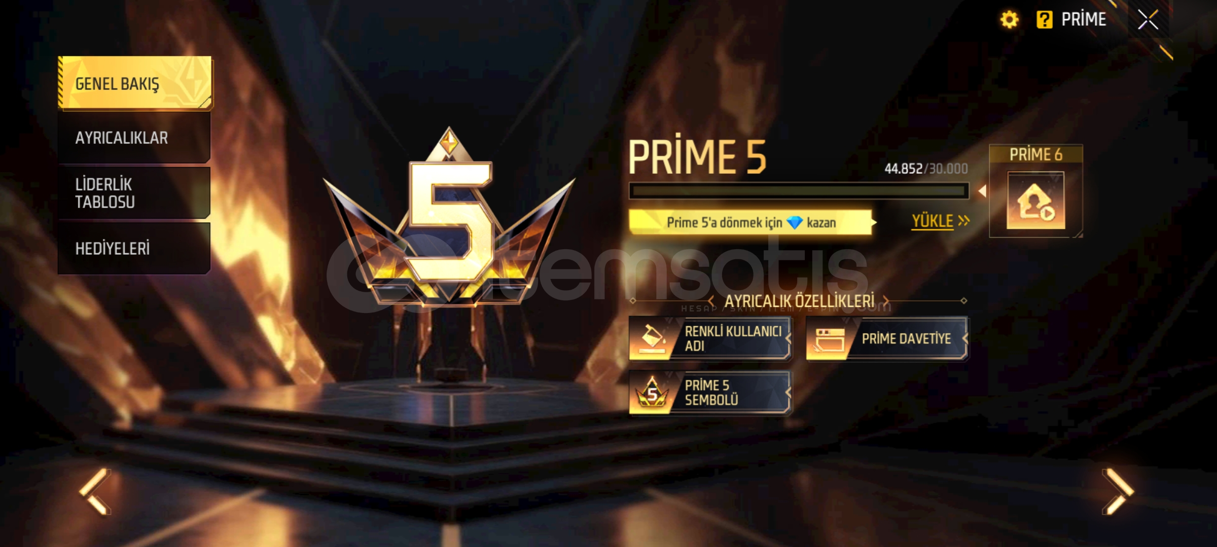 Hesap prime 5 44k elmas yatırılmıştır