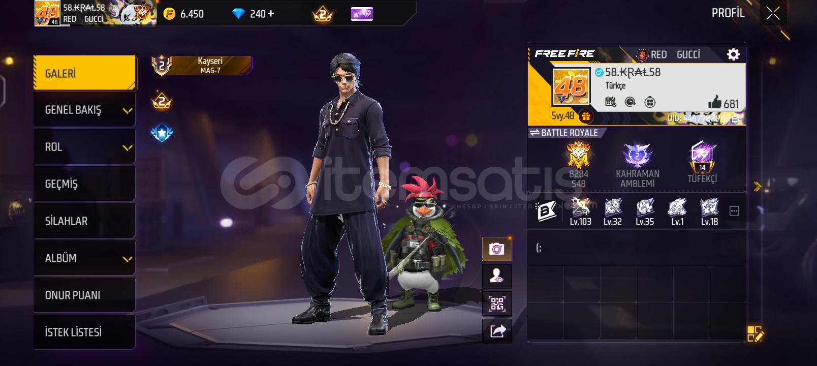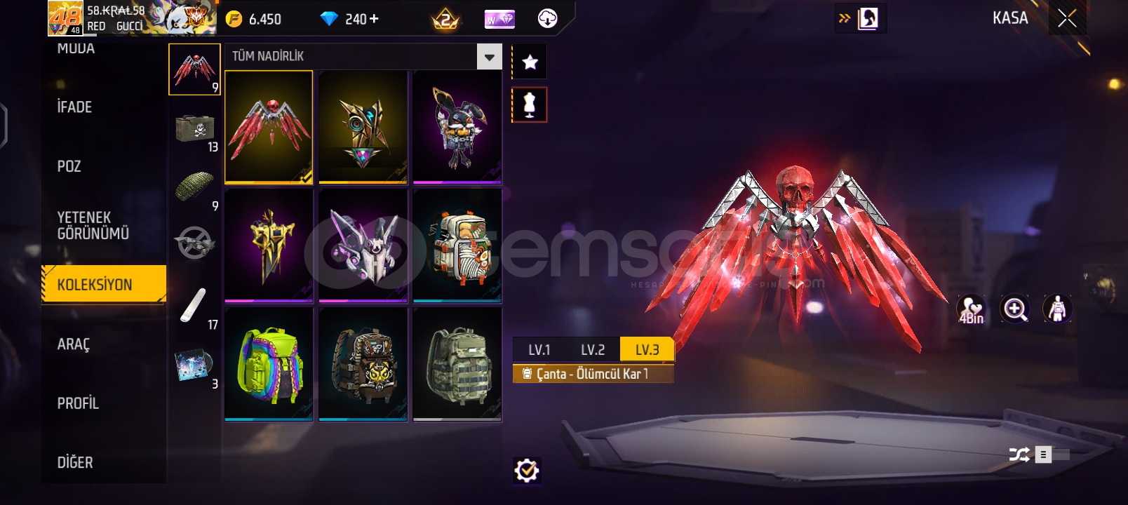 48 seviye nadir çantalar,arabalar var bu hafta geçince hesapta 540 veya 600 elmas olucak ucuza veriyorum