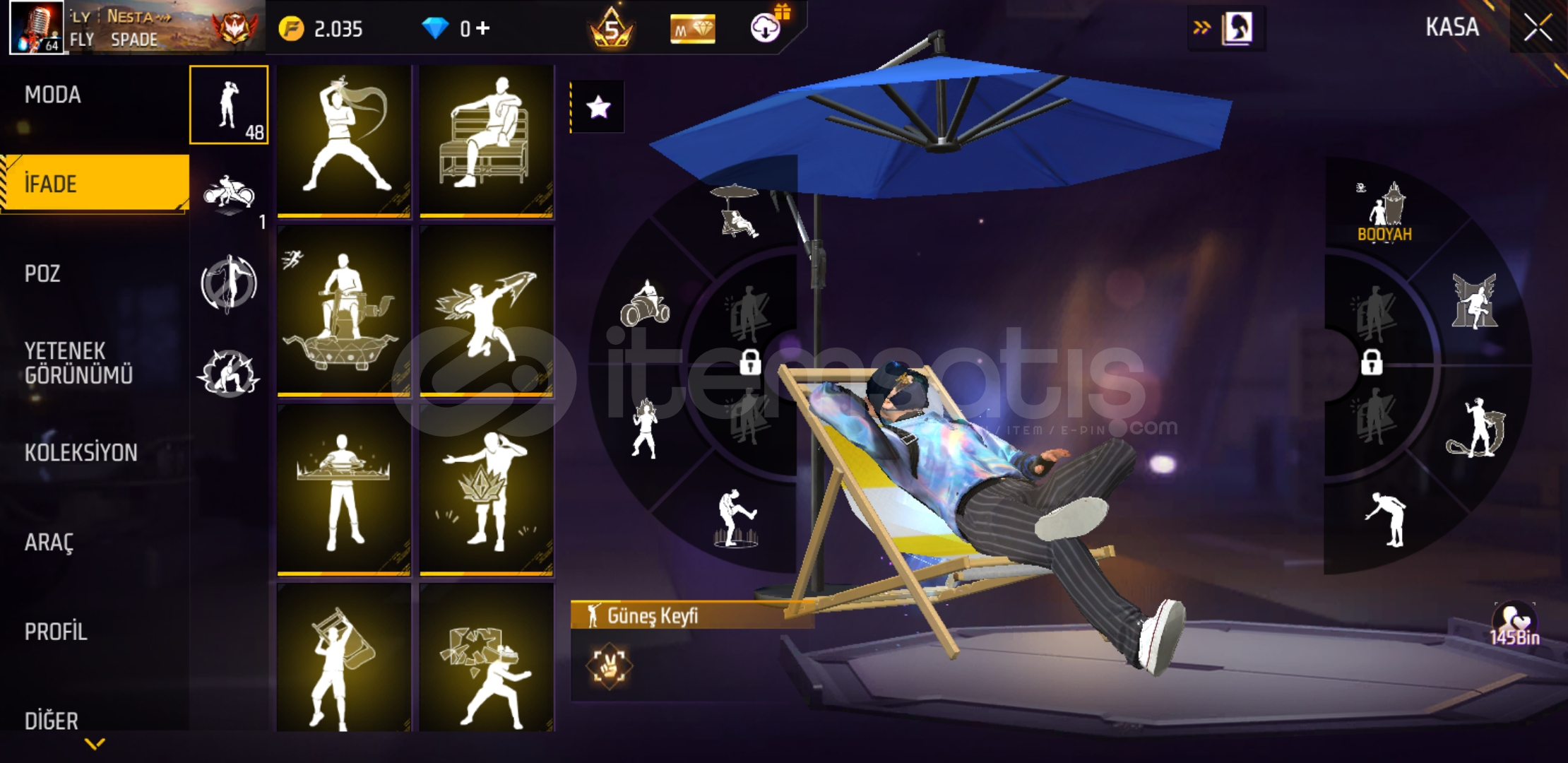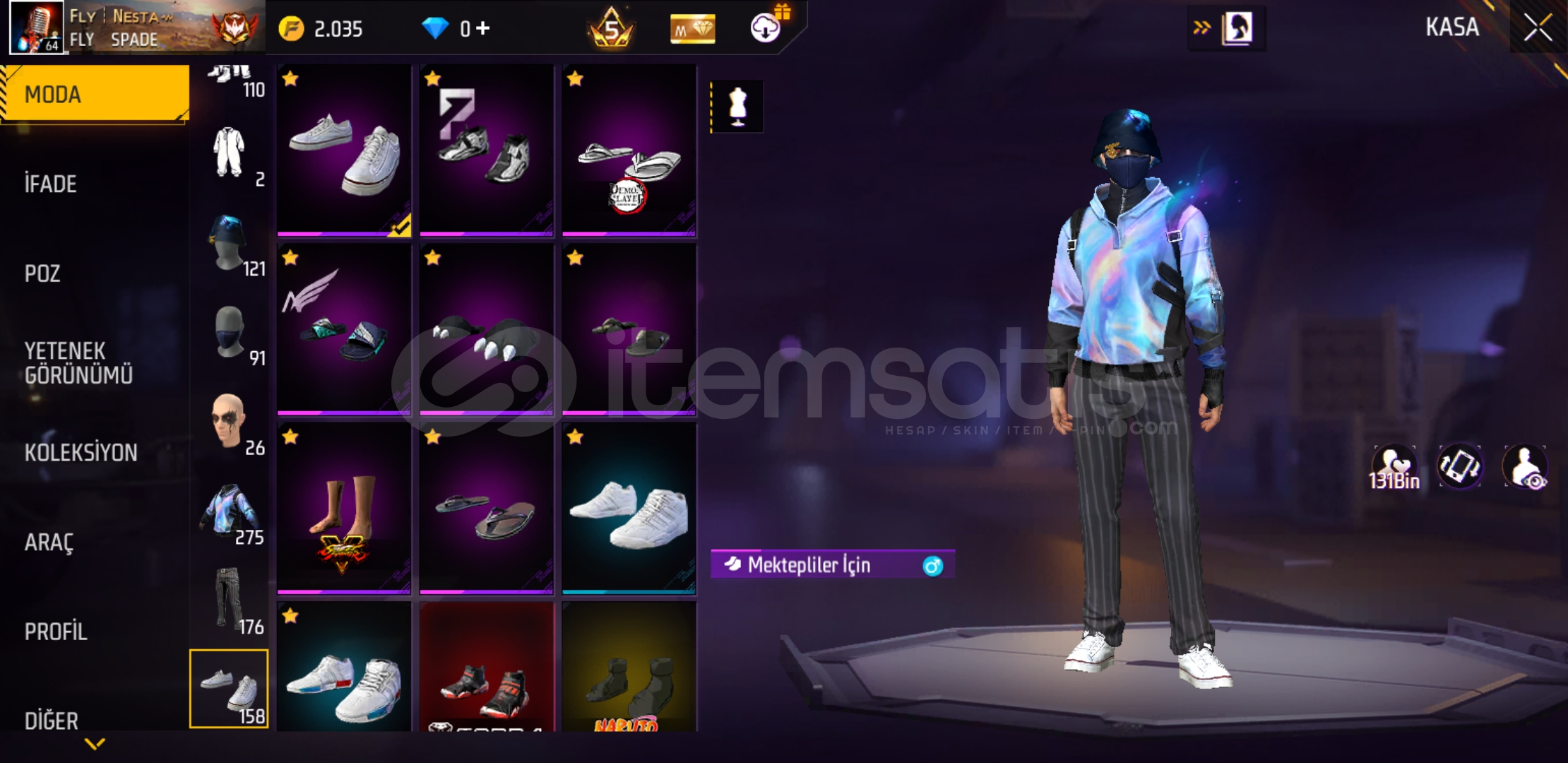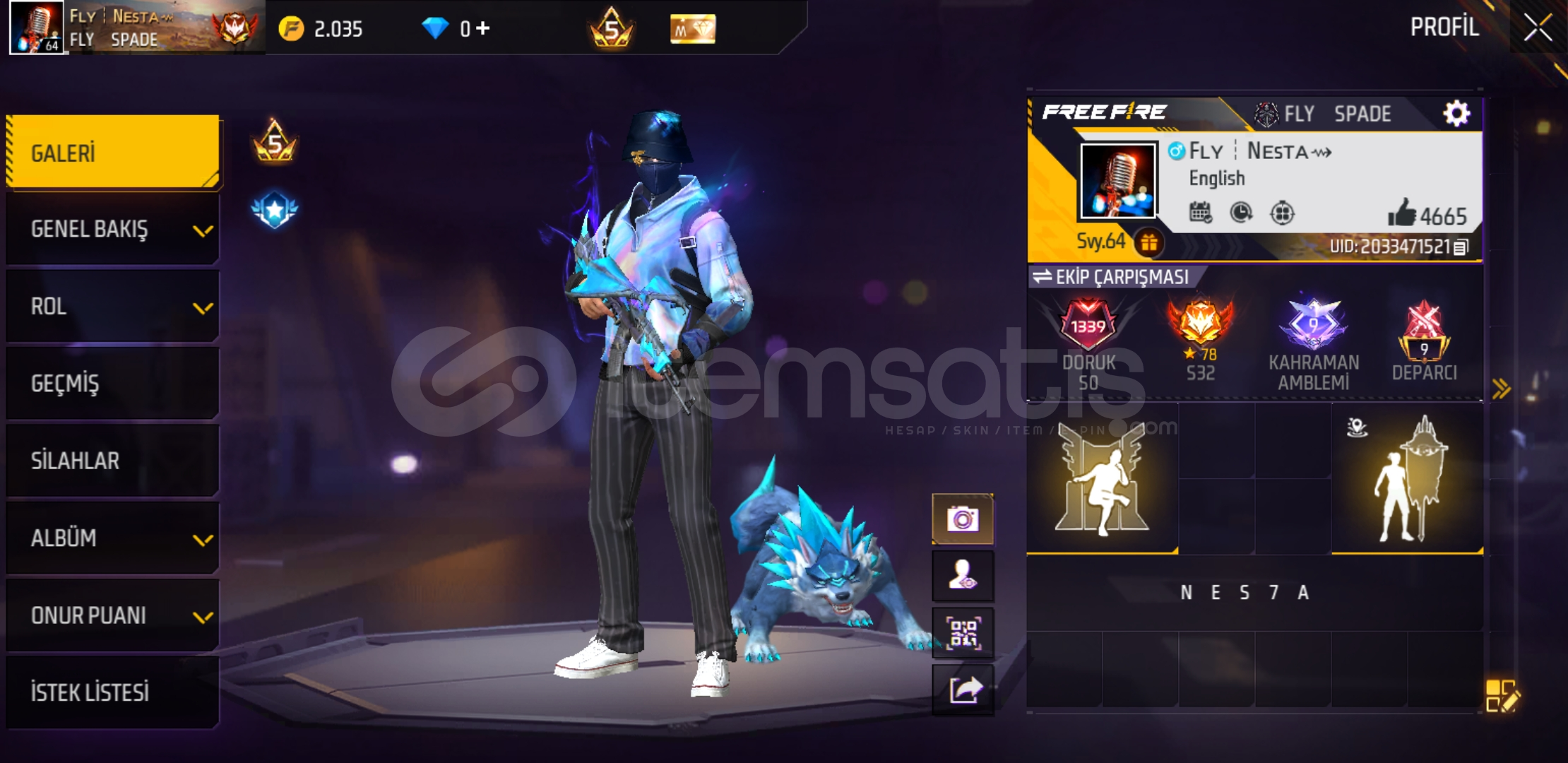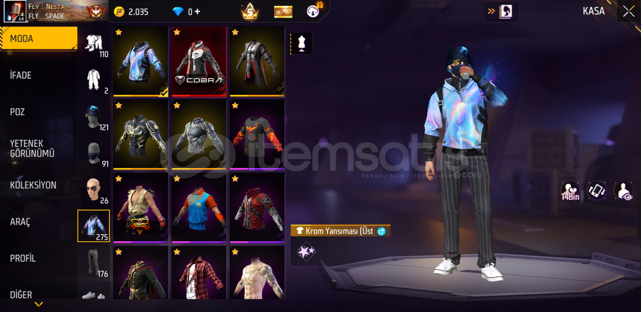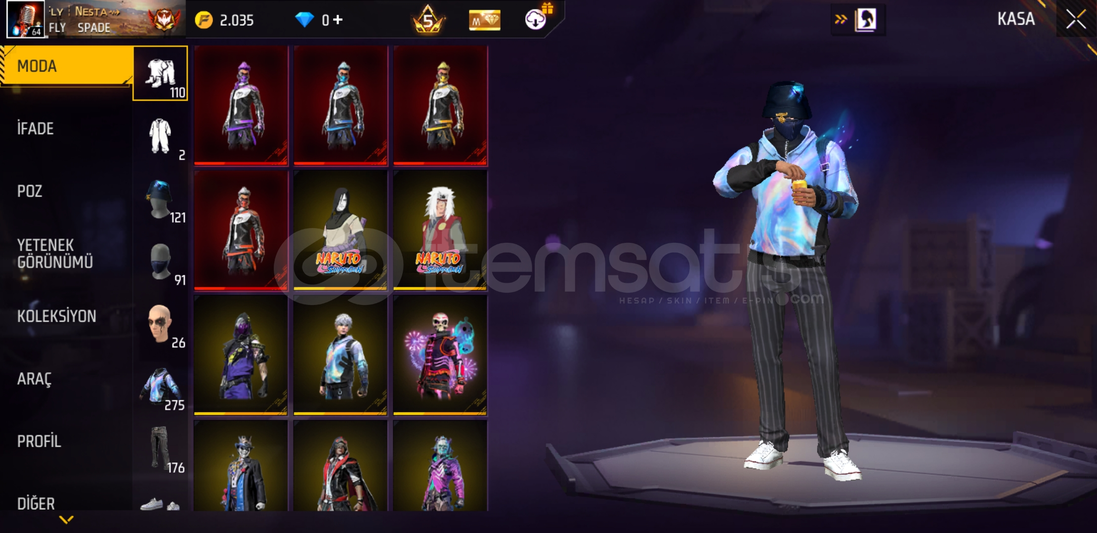 LÜTFEN SONUNA KADAR OKUYUNUZ !!!HESAP 64 Sv. ID: 2033471521Bağı Gmail 🔗Şuanda hesapta 2 sv. Xm8 🔵 4 sv. Max UMP 2 sv. M1014🔴 5 sv. AK47🔵 ve 3 sv. MP5🟡 olmak üzere 5 adet evo bulunuyor.Hesapta Bulunanlar: - 110 Kombin Set- 2 Kostüm - 121 Saç/Kafa/Şapka - 91 Maske- 26 Yüz Boyası - 275 Üst - 176 Pantolon- 158 Ayakkabı - 48 İfade ( Cobra , Korsan Bayrağı ve Taht Oturma dahil)- 1 Lobi...