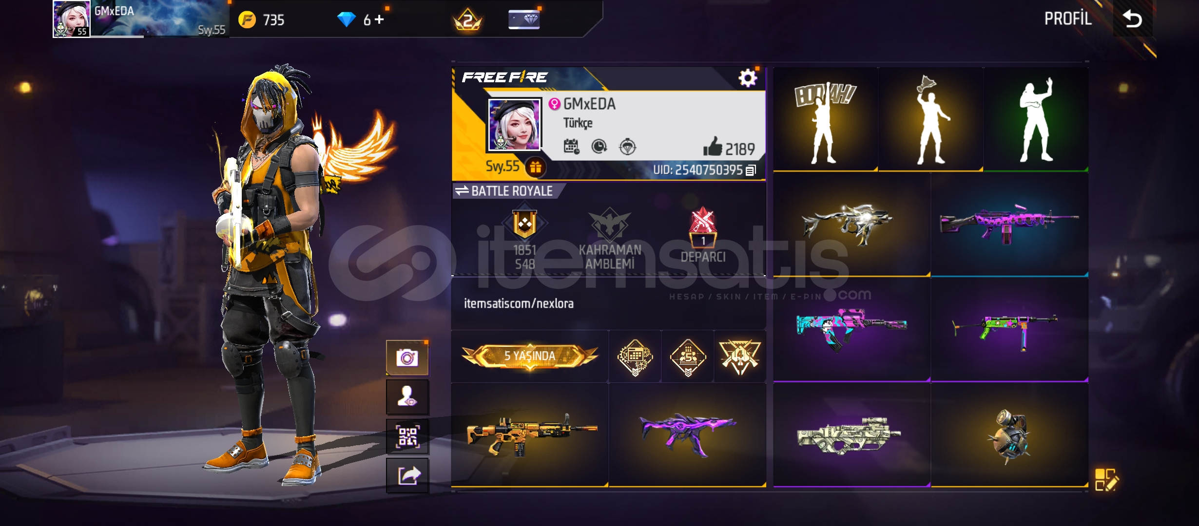 Hesabın bağı şuan maildir. Oyun içerisinden kurtarma e posta adresi bağlı değildir. Hesabın geri çekilme ihtimali kesinlikle yoktur. Gmail hesabı herşeyiyle size devredilir. Aklınıza takılan soruları sorabilirsiniz. Mesat atarsaniz hesabın detaylı videosunu atabilirim. Alıcısına şimdiden hayırlı olsun.