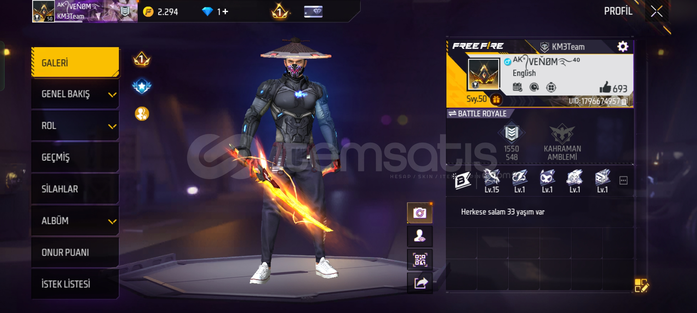6 Yıllık Free Fire hesabı Şahsi hesabımdır artık oynamadığımdan satıyorum ilk maili bana ait hesap dolu sayılır parasını hakettiğini düşünüyorum pazarlık olur Hesapta 2. Altın otamat vardırHesapta 2 adet isim değiştirme kartı mevcutturAlıcısına şimdiden hayırlı olsun.