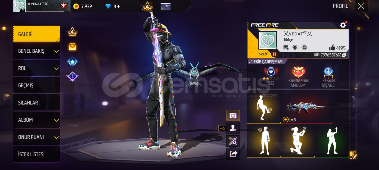 63 sv hesap Karakterlerin çoğu açık ,hayvanların çoğu açık Evo silahı var XM8 hesabı oynamayı bıraktığım için salıyorum o yüzden ucuz