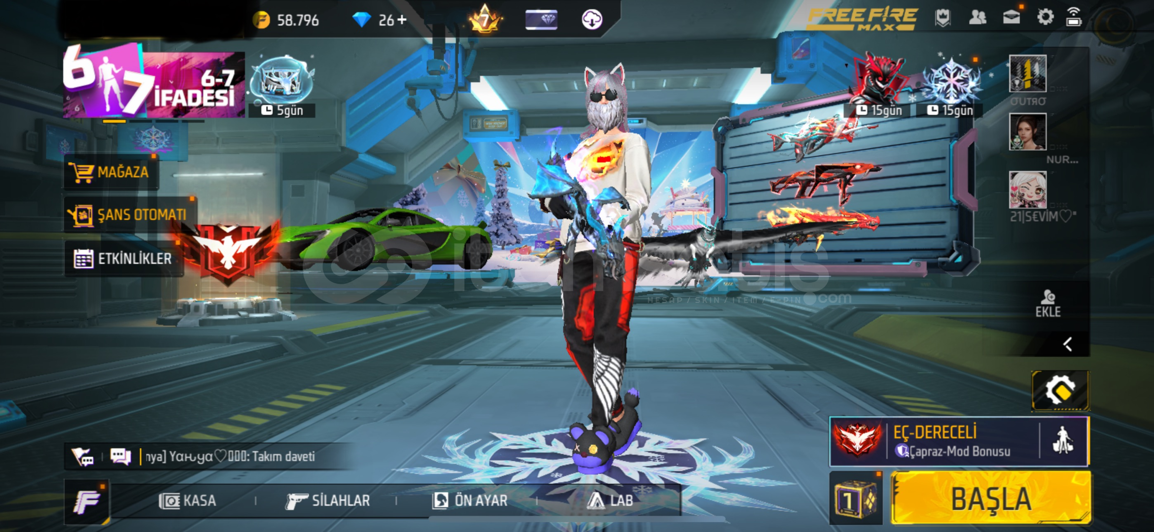 Hesab çok güzel vakit bulamadığım için satıyorum10 evo vardır 6 tane max kıyafet fln baya var şimdiden hayırlı olsun