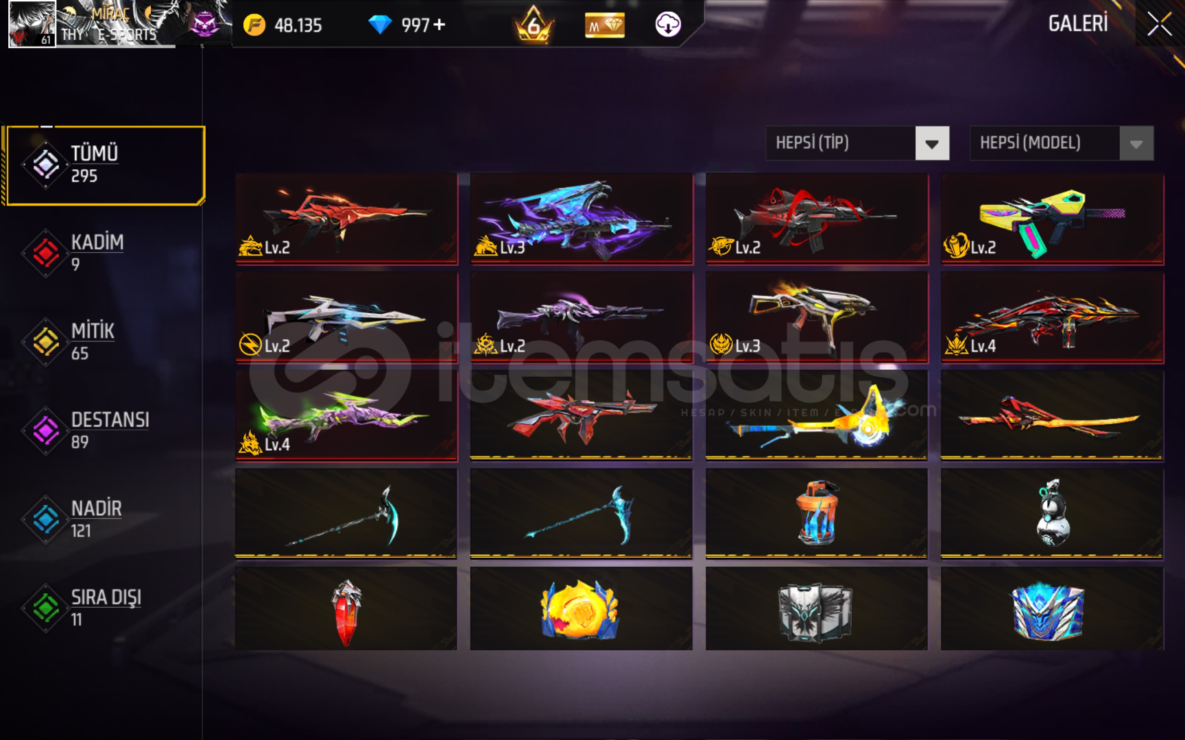 E-posta değişir herşeyi teslim edilir (Yardımcı olunur)10 adet evo varPazarlık yapılırOyunda eklenilip hesap detaylı gösterilirAranan suçlu (ALTIN) varDede sakalı varEfsanevi galaksi kostümü varAylık üyelik açıkNeredeyse Prime 7Çok fazla hiper kitap varCaz pantolonları mevcut❤️Şimdiden hayırlı olsun❤️