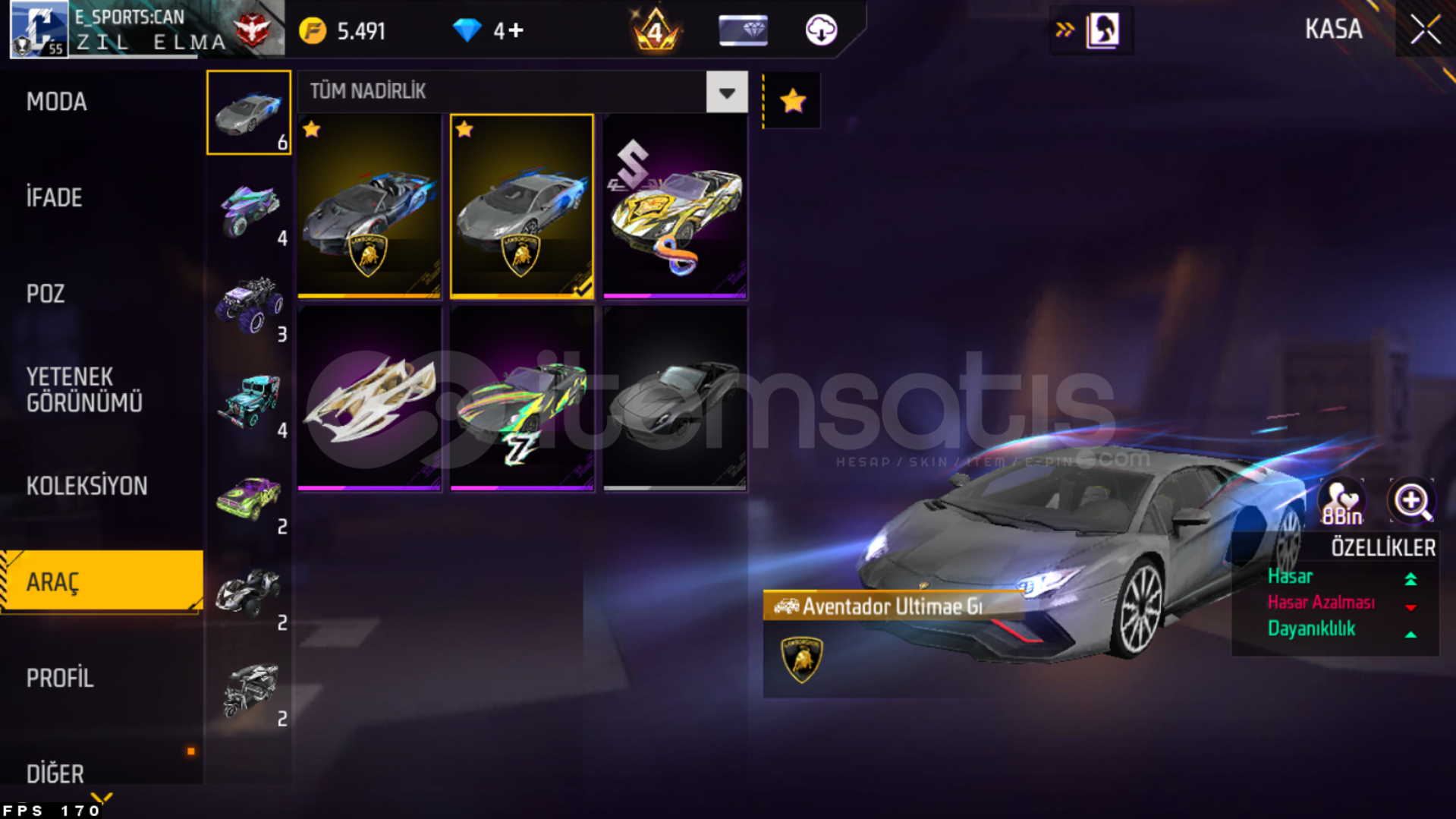 tkaslık hesap 2 tane lamborgını var kıyafet dolu yumruk ve gelıs anımasyonu olsun yeter yanında tıktok hesab...