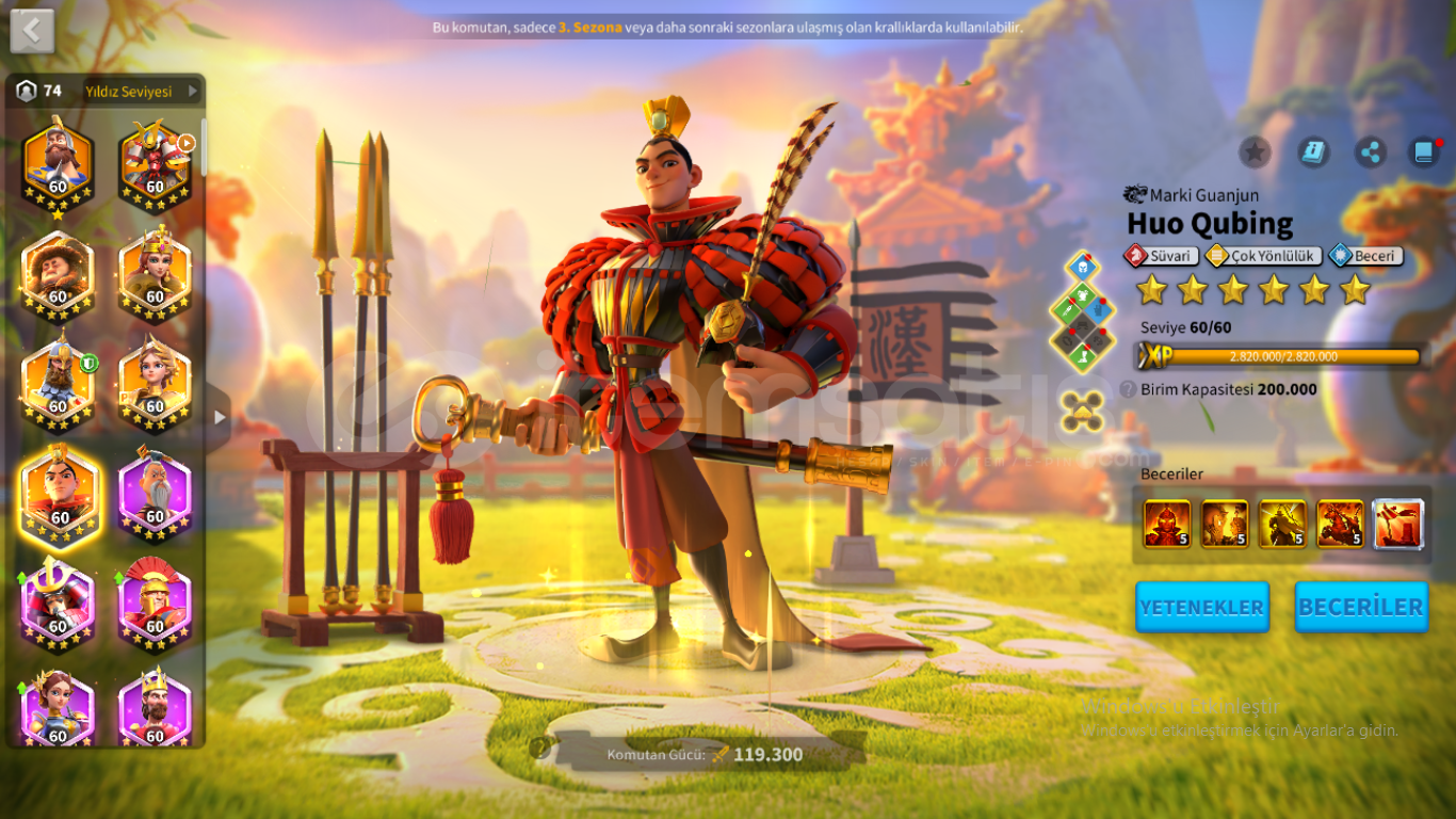 KOMUTANLAR = HUO 5555 JEANNE 5555 SUNTZU 5555 ALEX 5555 CENGİZ HAN 5555