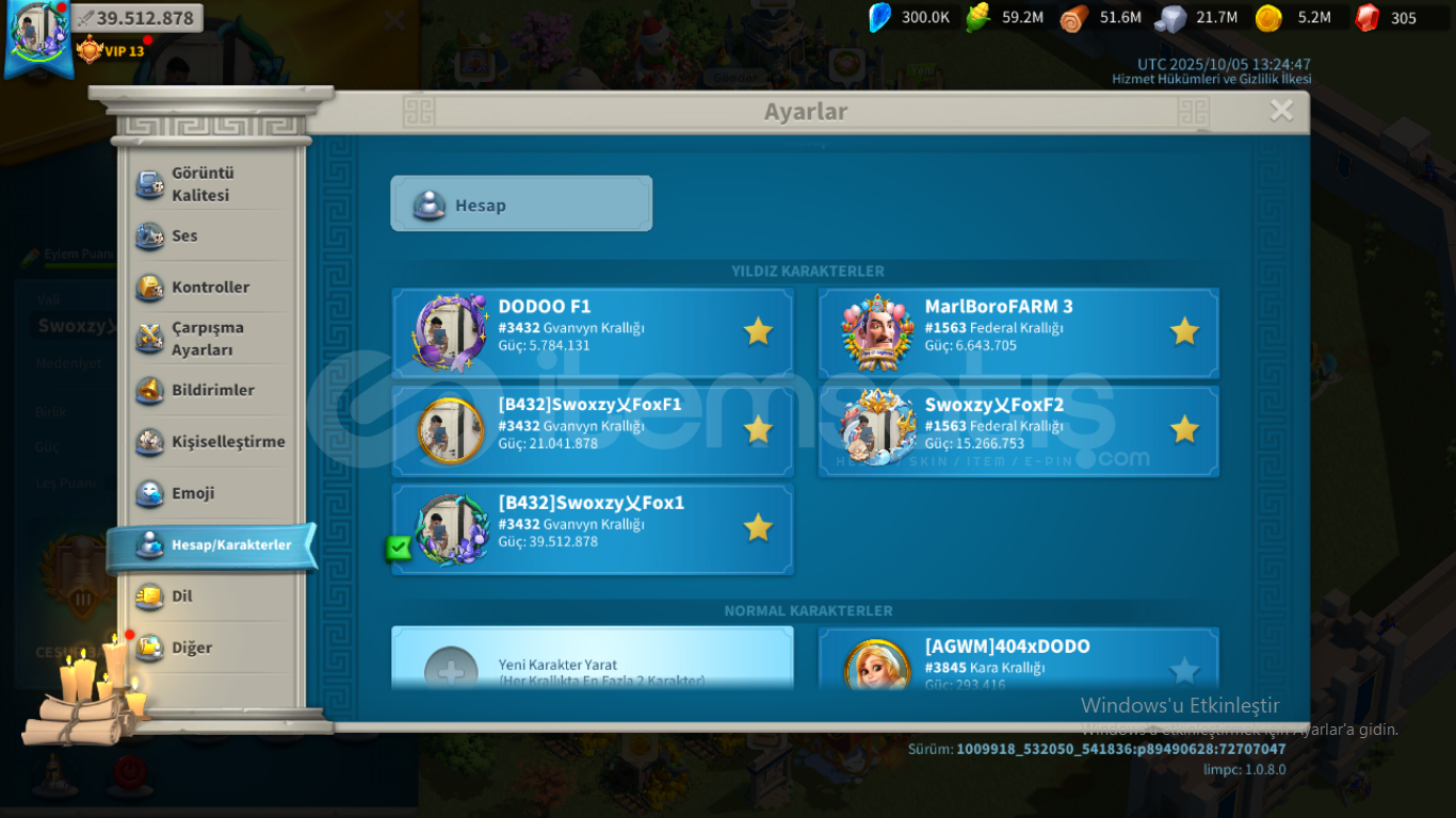 MERHABALAR HESABIMIZIN 4 ADET FARM HESABI MEVCUTTUR ALAN KİŞİYE ŞİMDİDEN HAYIRLI OSUN GÜÇ = 39M KP = 46mVİP SEVİYESİ = 13 PASAPORT = 27AD GOCE HAZIR FARM HESAPLARININ DA HEPSİ GOCE HAZIR 1 HESAPTA ZENİHT OYANDI 840G YAKIN HIZLANDIRMASI VAR KOMUTANLAR = HUO 5555 JEANNE 5555 SUNTZU 5555 ALEX 5555 CENGİZ HAN 5555 HESAP OTO TESLİMDİR ALAN KISI DIREK MAIL USTUNE ALABİLİR ALAN ARKADASA ŞİMDİDEN H...