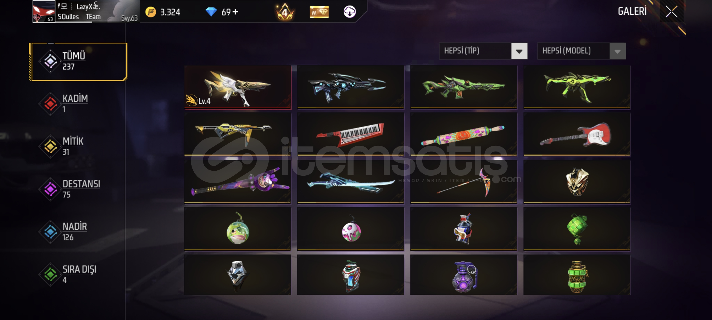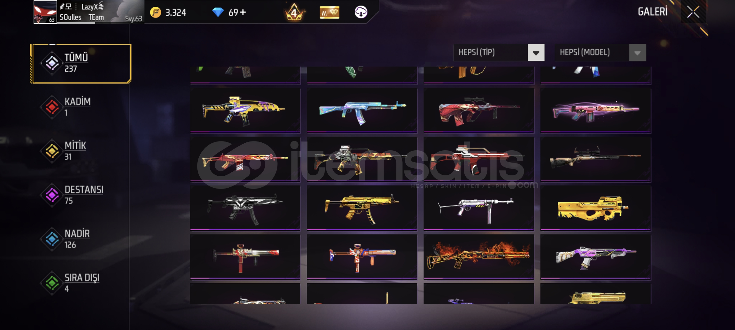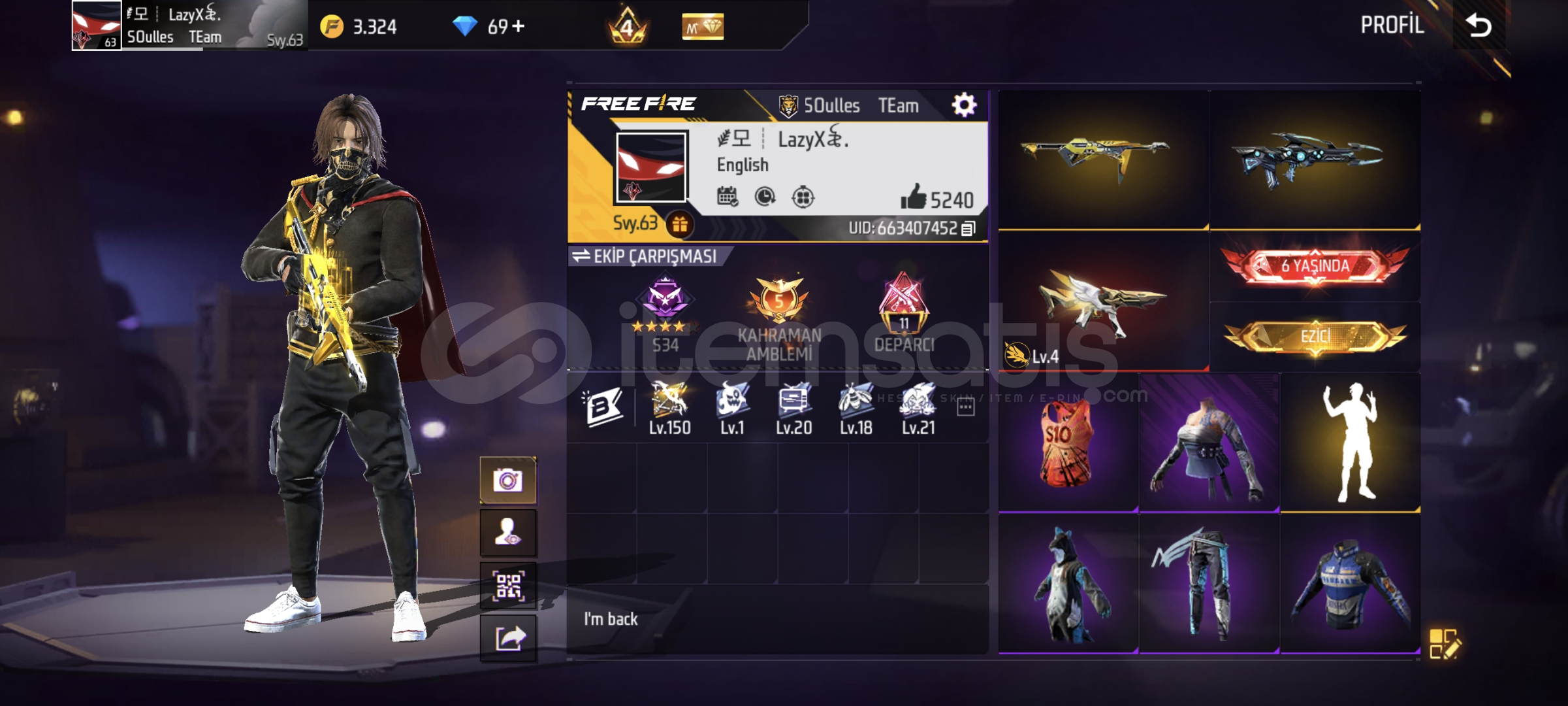 Hesap tek bağ Facebook tur kız erkek kombinleri gayet yeterlidirSilah konusunda gayet iyidir Oyundaki panellerden sıkıldığım için satıyorumDetaylı video veya hızlı geri dönüş için @nigamanahmedoxsi ig hesabına yazabilirsiniz