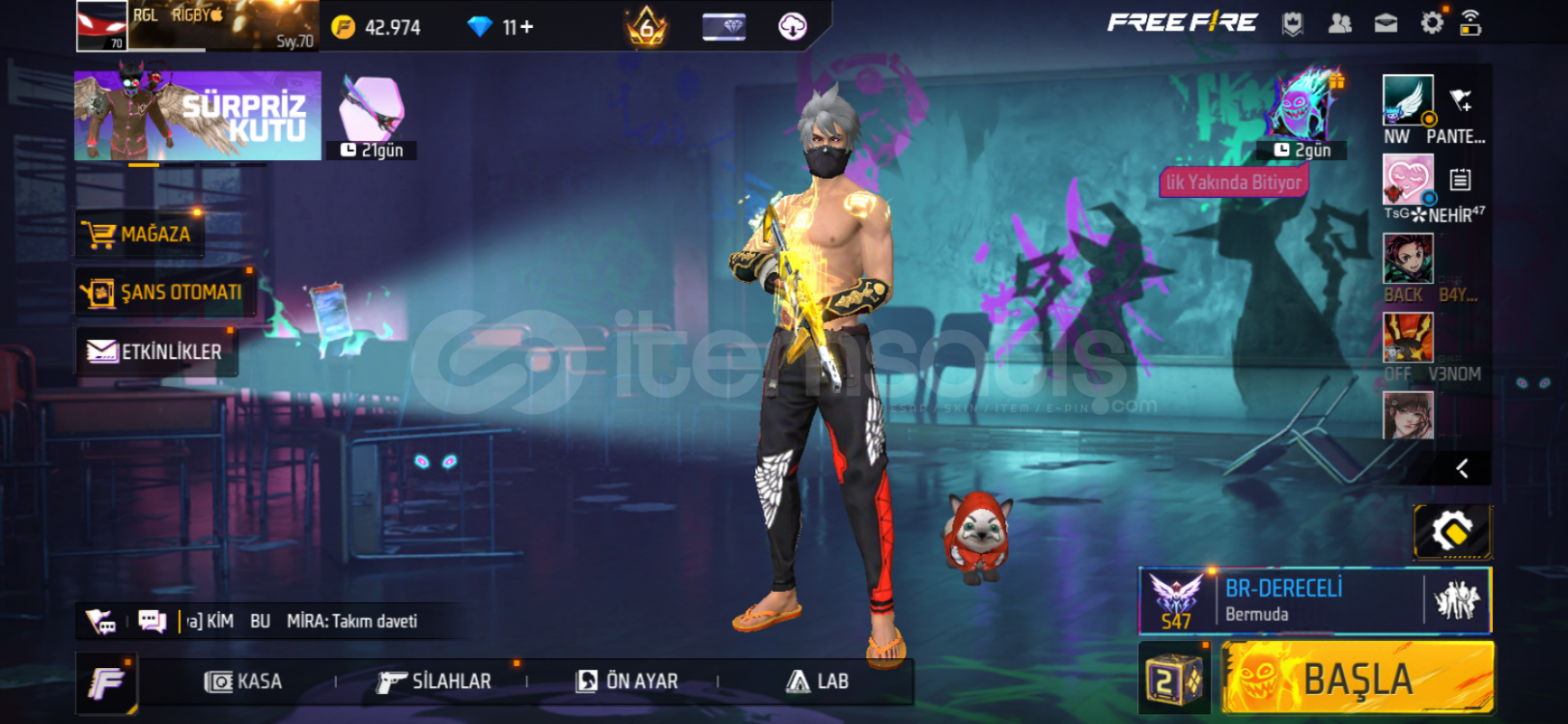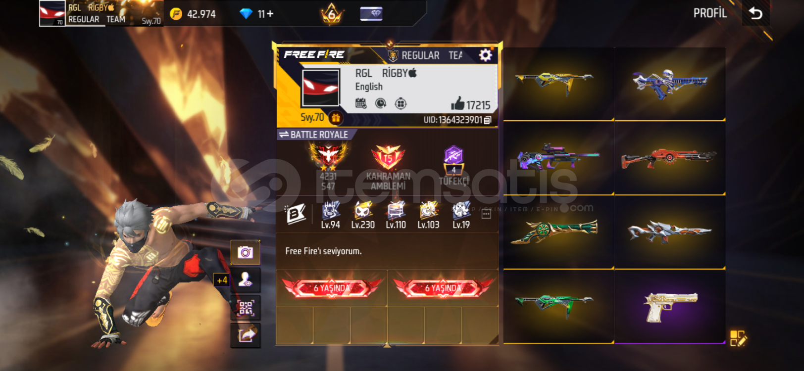 Hesapta sarı Poker mp40 cobra setleri ve dolu evo mevcuttur.