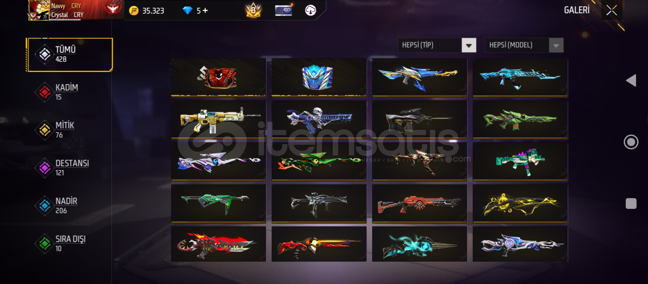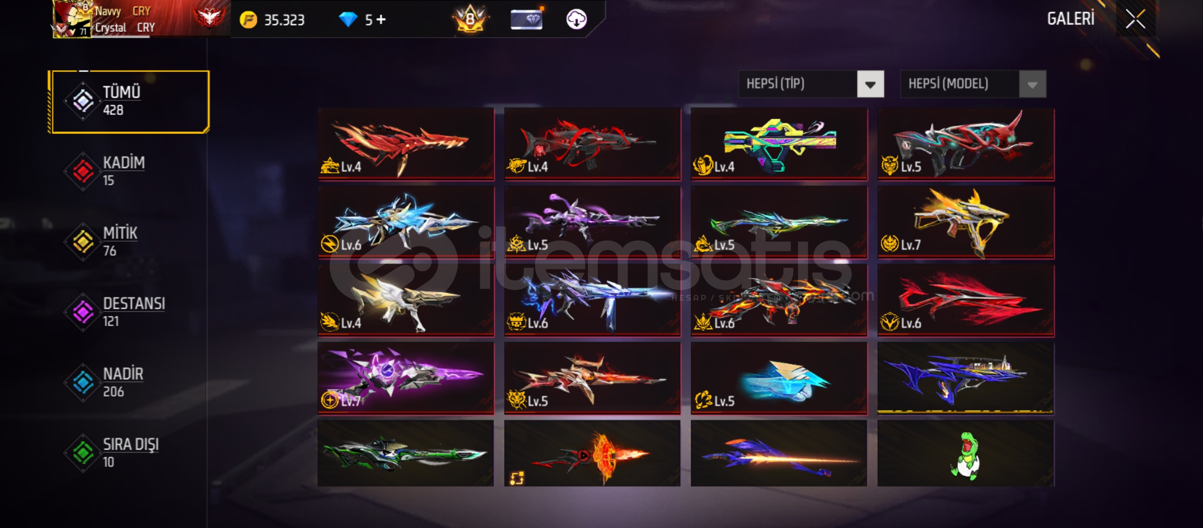 KESİN ALICILARA İNDİRİM YAPILIRPRİME 8 HESAP DOLDU DOLU (6 YAŞINA YAKIN)KIYAFETLER:- 10 tane tam set- 185 Saç- 129 Maske- 46 Yüz boyası- 387 t'shirt (üst)- 263 pantolon- 230 AyakkabıSİLAHLAR(EVOLARDA):-15 Evo (3 Max)(4 tane 6 Seviye)(4 tane 5 Seviye)(3 tane 4 Seviye)-20 Adet atölye (yeni gelenler,nadirler)ATLAMA/LOBİYE GİRİŞ EMOJİ VB:-68 Emoji (2 Gurup emojisi)- 6 Lobiye giriş- 2 Dönüş...