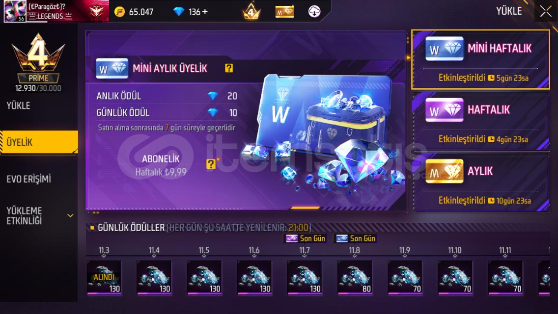Hesap 56 sv olup şimdiye kadar 3 kere aylık üyelik 10 kere haftalık üyelik 26 kerede günlük üyelik alınm&...