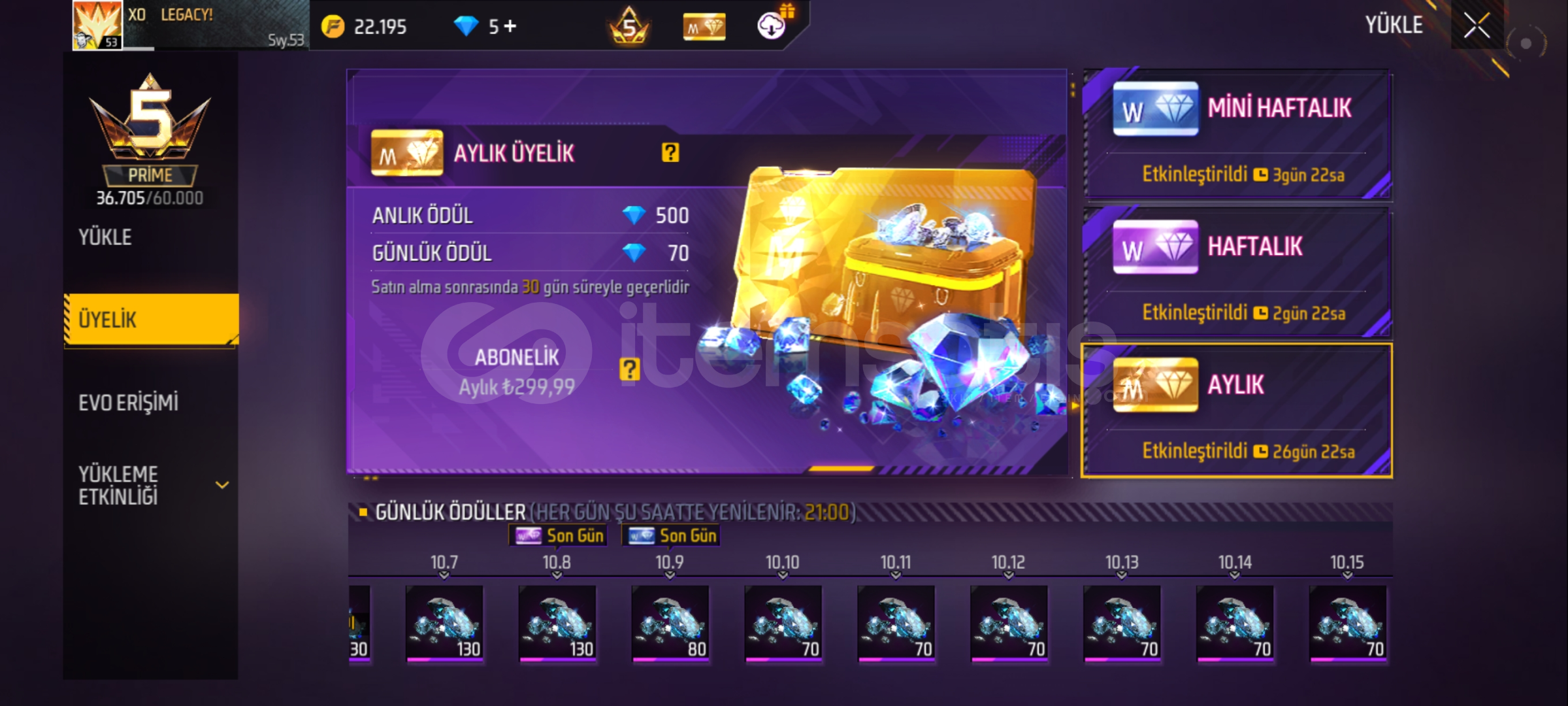 Hesap butun uyelikler acık evo paketi 1 aylık açık