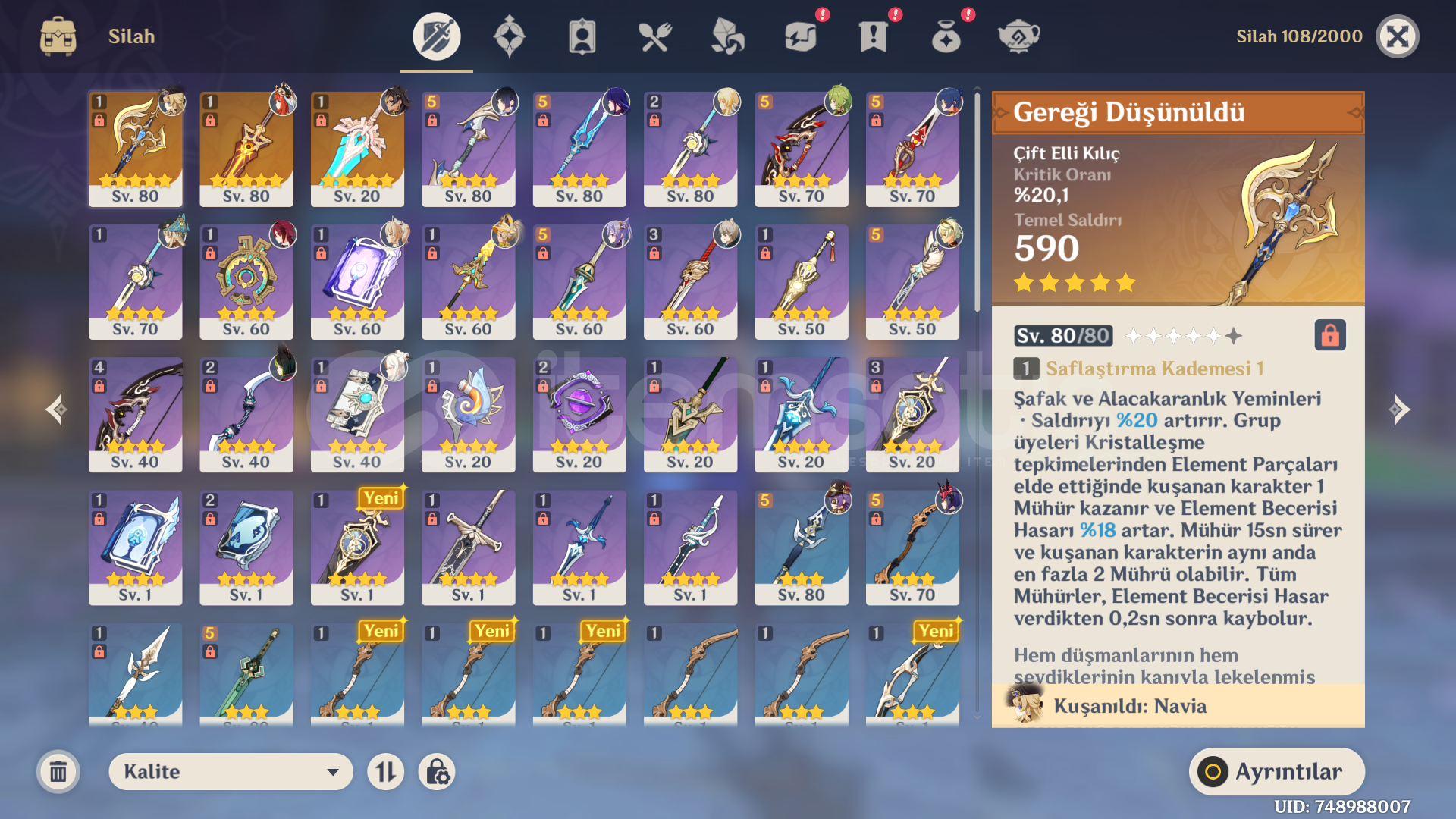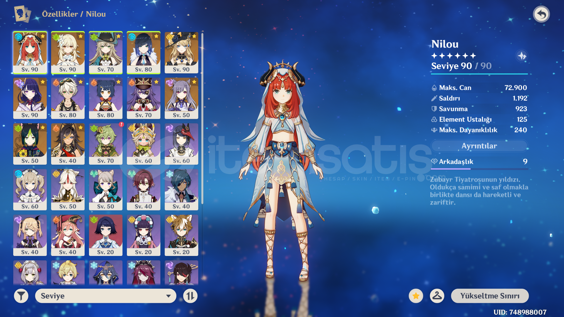 Hesap EU (Avrupa) sunucusudur.Nilou VE Navia'NIN KENDİ SİLAHI VARDIR.Hesap fotoğraflardaki gibidir.Karakterleri dilediğiniz gibi kasabilirsiniz.40+ Pity'si vardır.NOT: Hesap maili ile beraber verilecektir. Dilediğiniz gibi değiştirebilirsiniz.NOT: İLANI SATIN ALMADAN 'Hesabı deneyeceğim.' 'Hesaba girmeden almam.' vb. MESAJ ATANLAR ANINDA ENGELLENİPDOLANDIRICILIKTAN ŞİKAYET EDİLECEKTİR.NOT: İlan...
