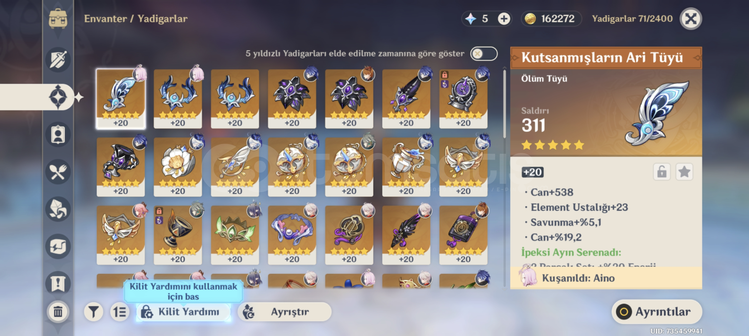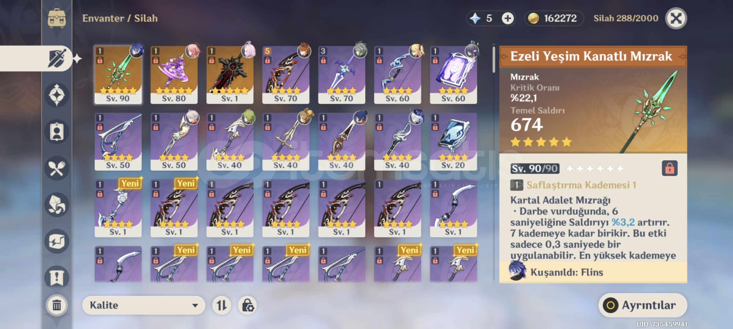 Xiao, Diluc ve Yae Miko'nun silahi