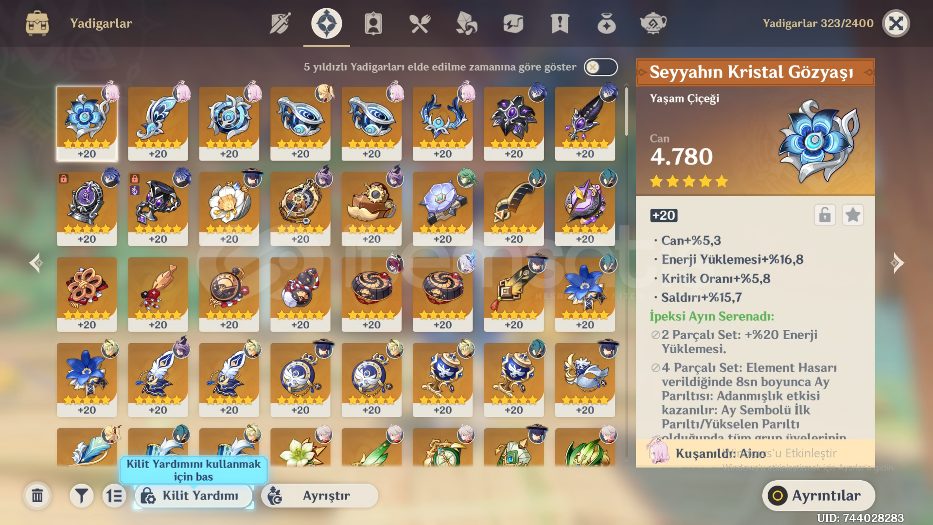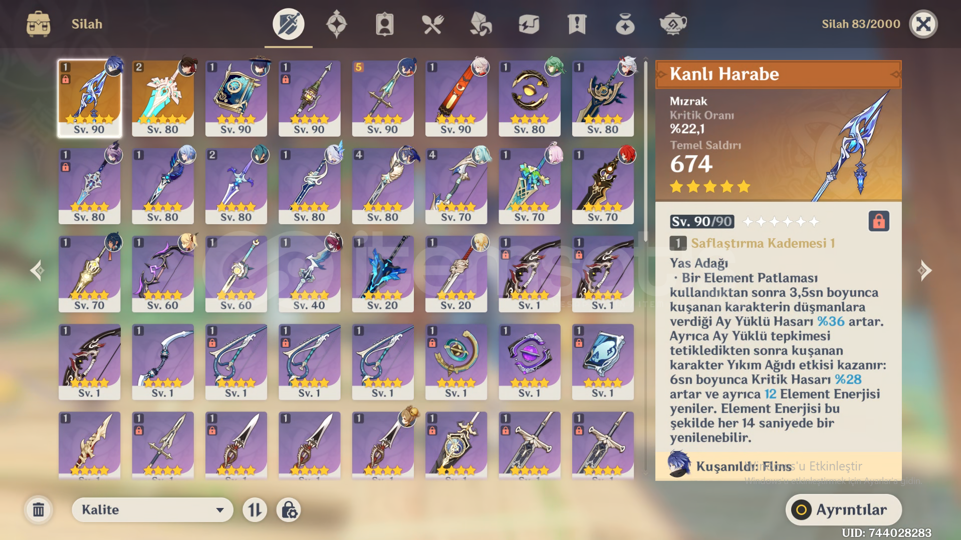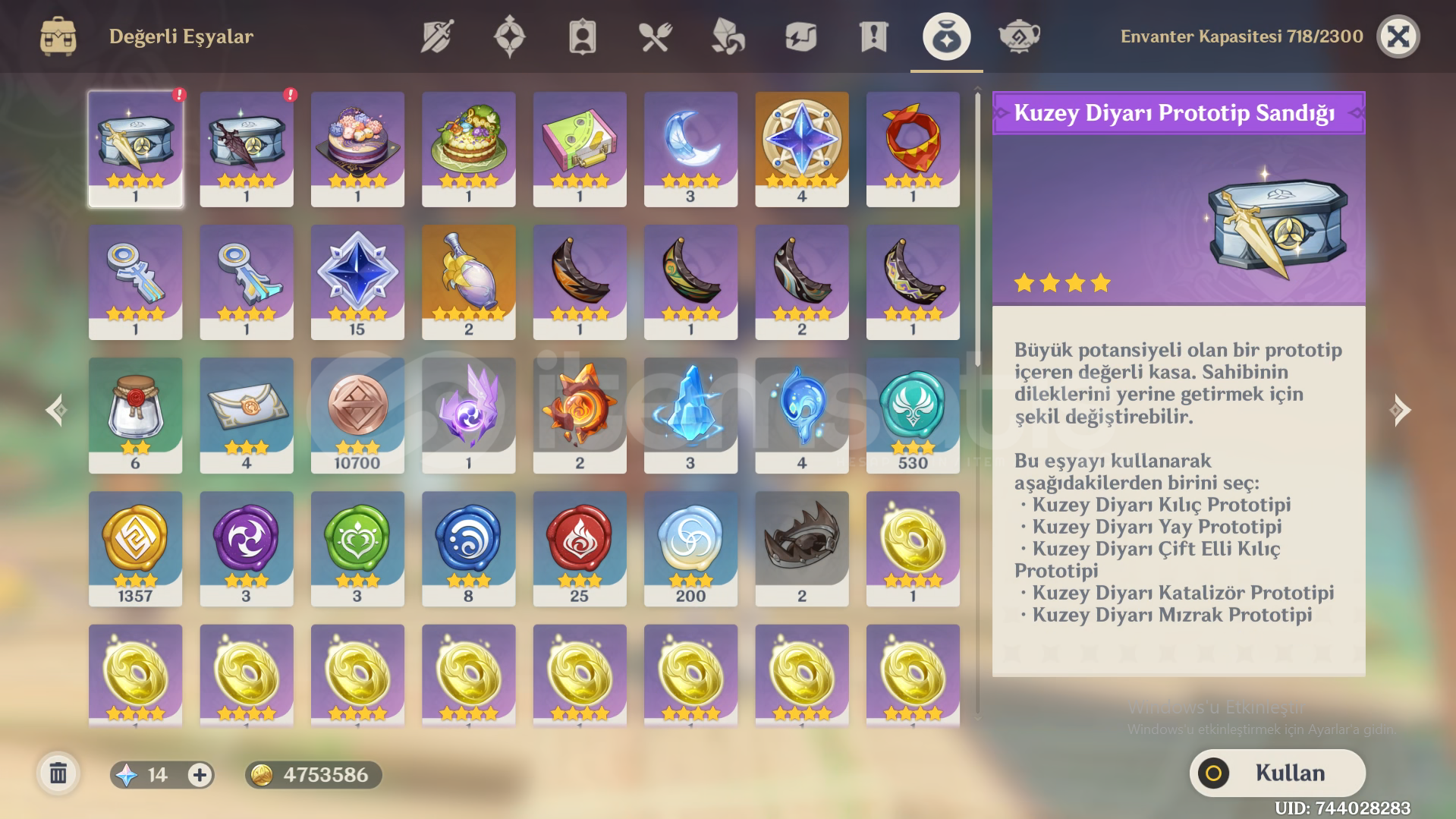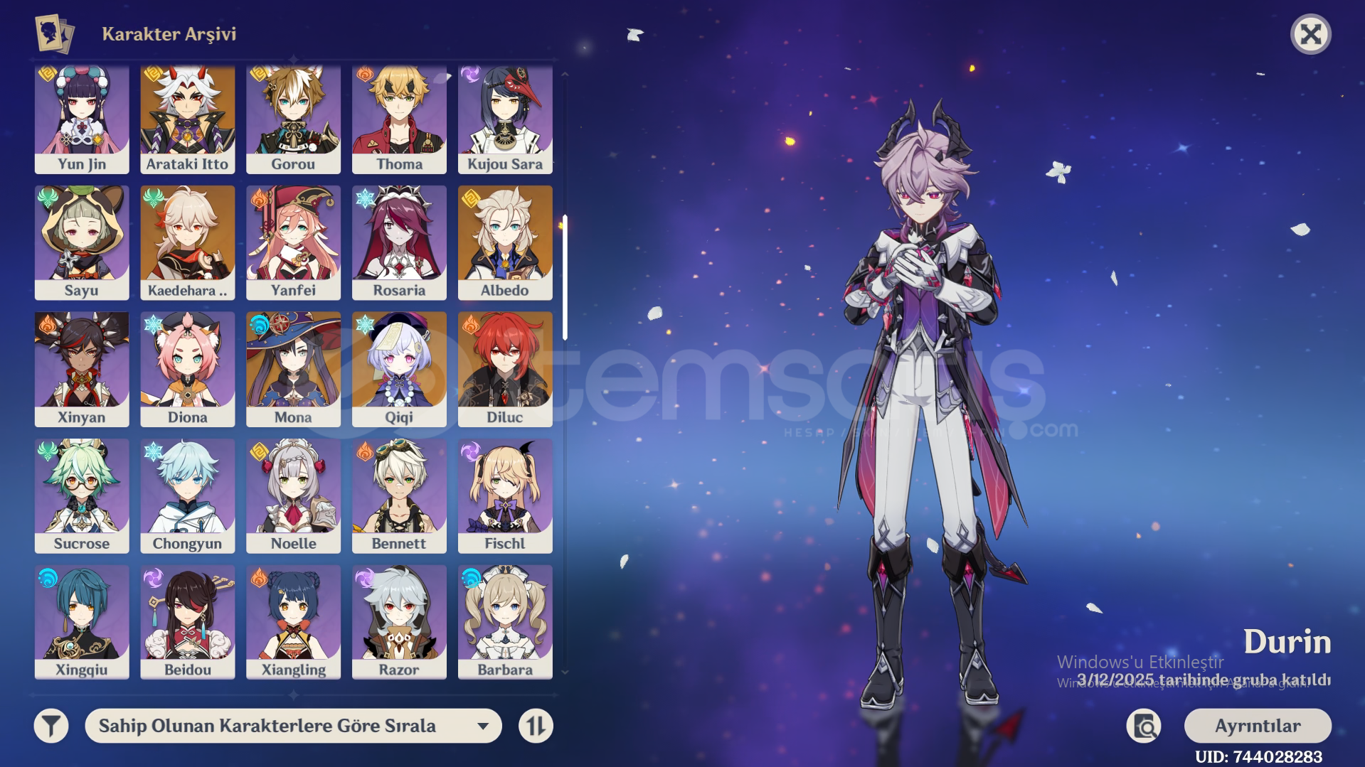Hesapta bulunan karakterler görsellerde mecvut, ayrıca Diluc ve Qiqi cons 1.
