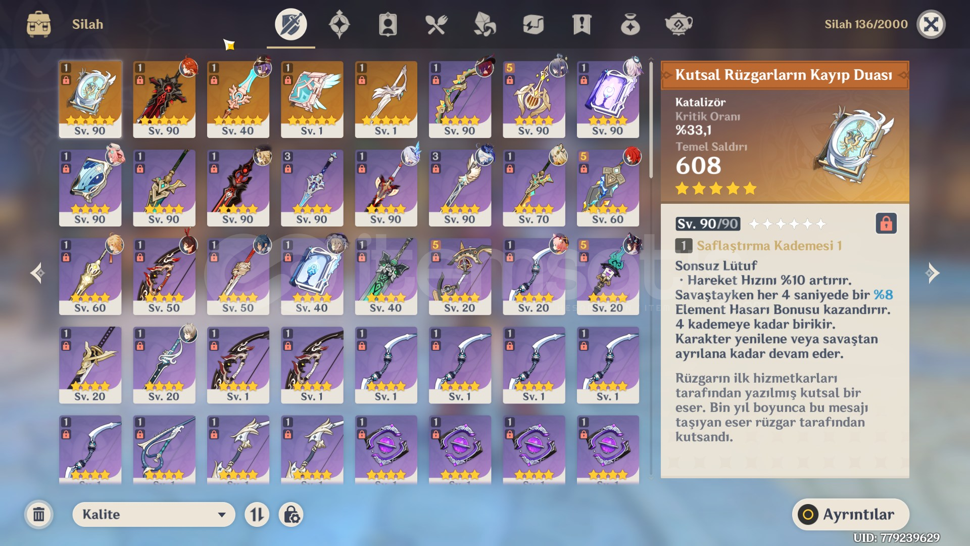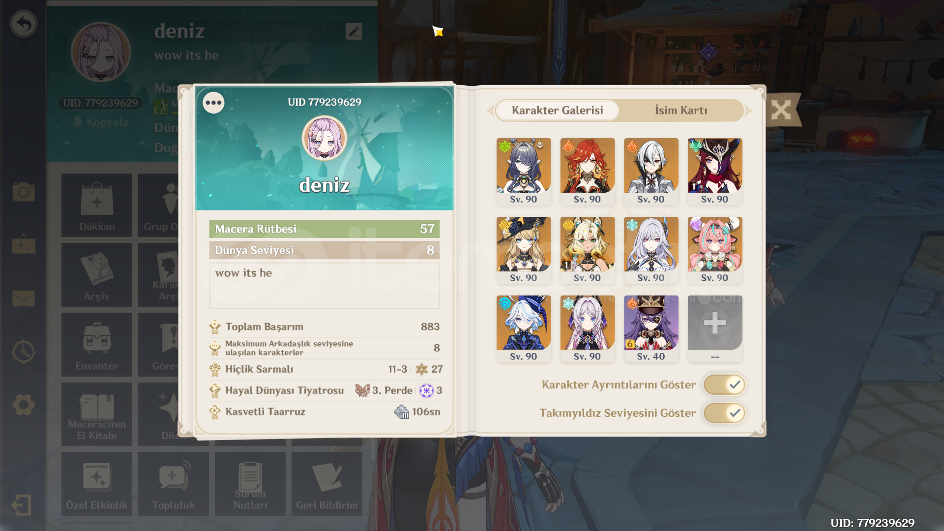 Nerdeyse herkesin isteyeceği karakterler var. Karakterler kasılıdır. Bölgeler kasılıdır. Her bölge 90 civarındadır 100 olan bölgelerde vardır. Alan kişiye hayırlı olsun. Hesapta diluc, qiqi, tighnari ve dehya' da ek olarak vardır. hazır 130 wish vardir.