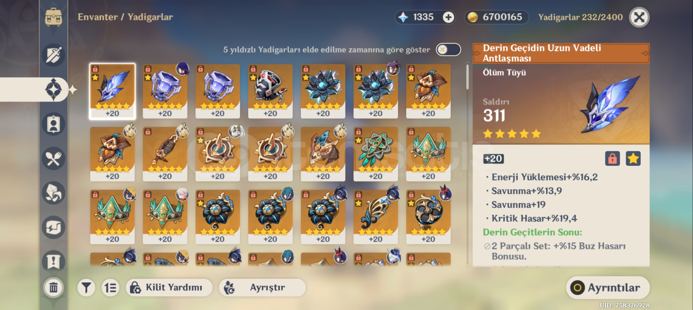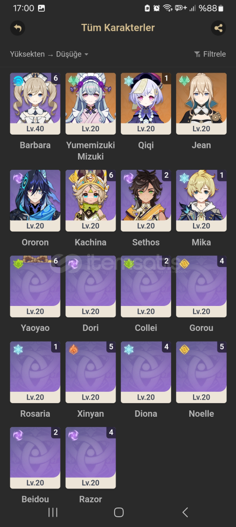 Pity 1017 5 yıldızlı karakter varYadigar setleri diziliFırına c1 r1 xilolen c2 kazuha c1 yelan c1 r1Sormak istediğiniz bisey varsa yazin