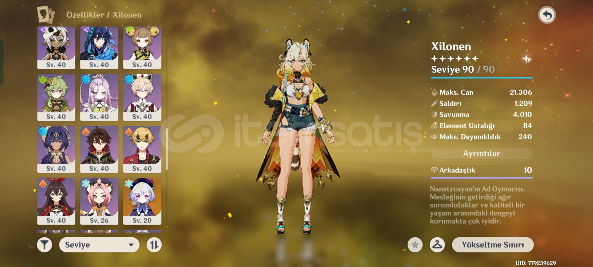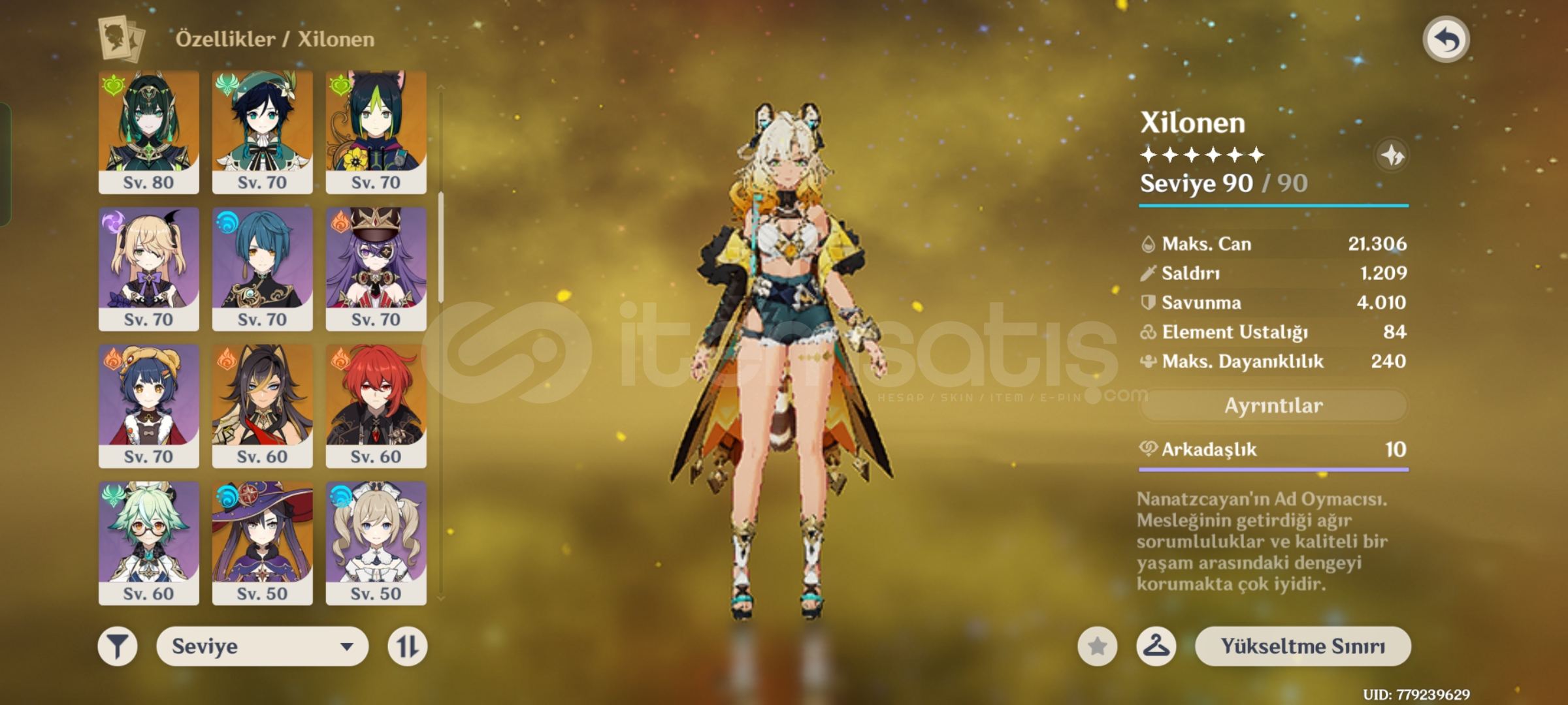 Hesapta C1 xilonen C1 chasca ve C1 Mona vardırPazarlık dozunda olduğu şekilde olabilir dolu Zenless Zone zero hesabı ile takkas kabul edilebilirNatlan,mondstat,liyue,nodkrai fullDiğerleri %80Enkonomiya boşSormak istediğiniz birşey olursa dmden ulaşabilirsiniz
