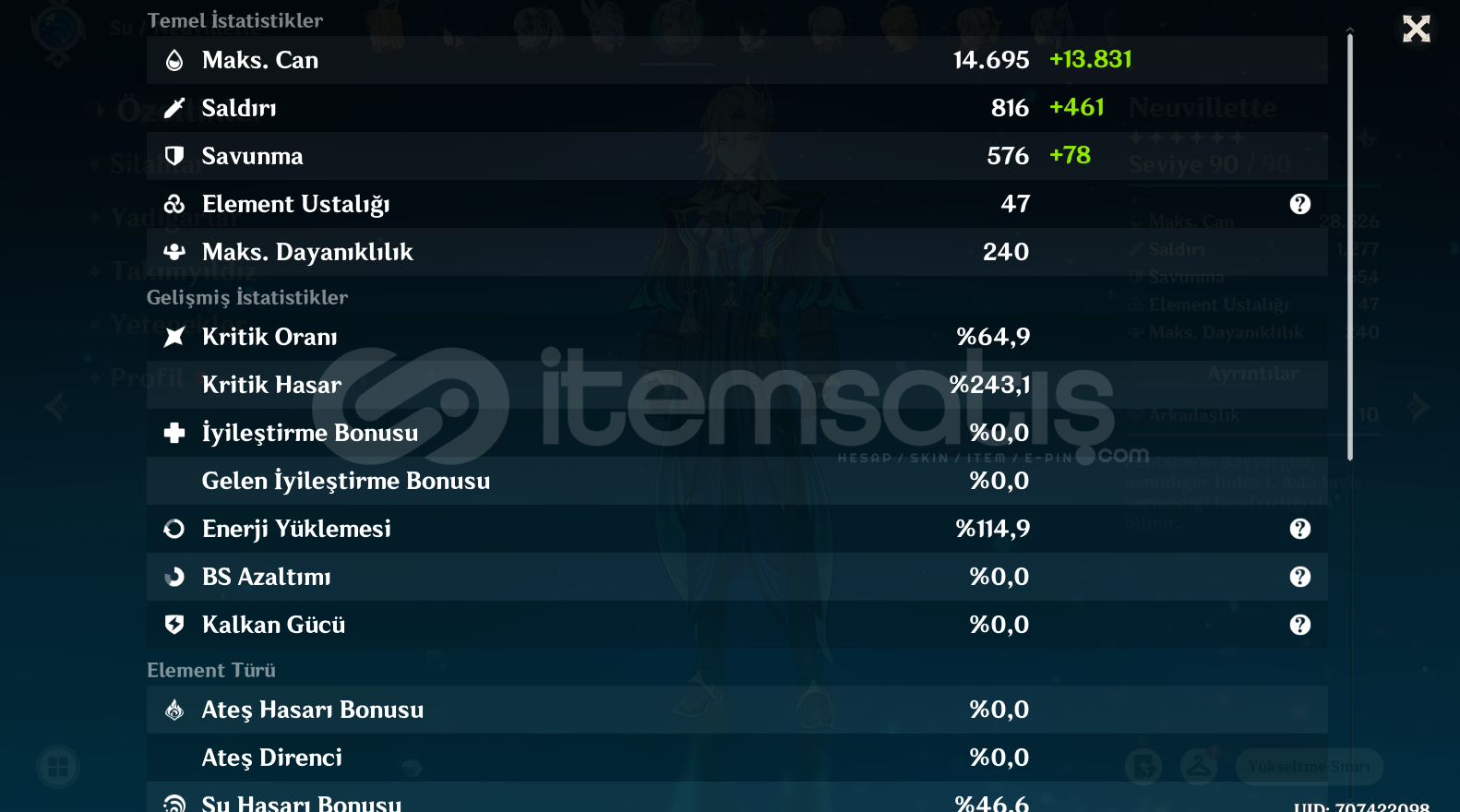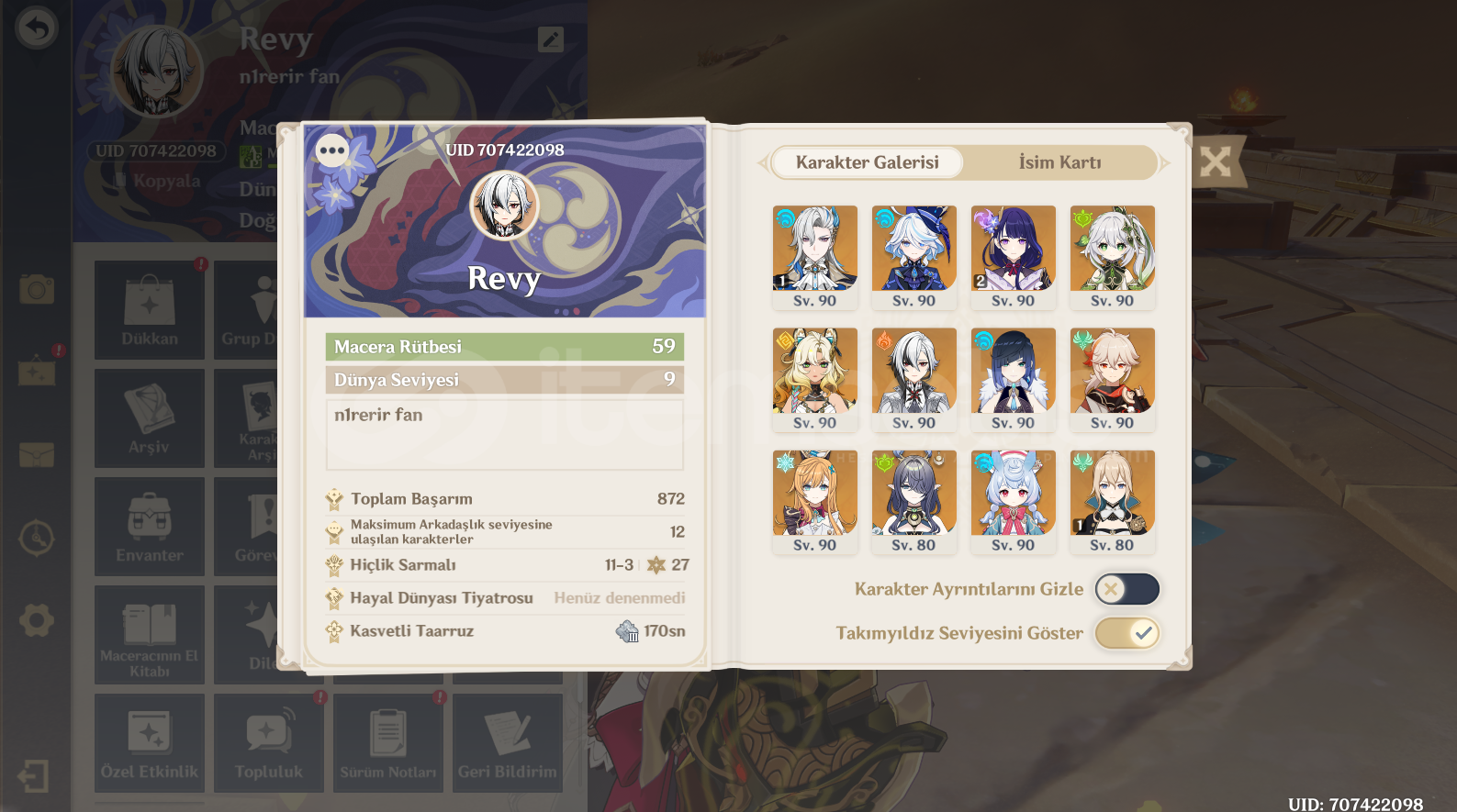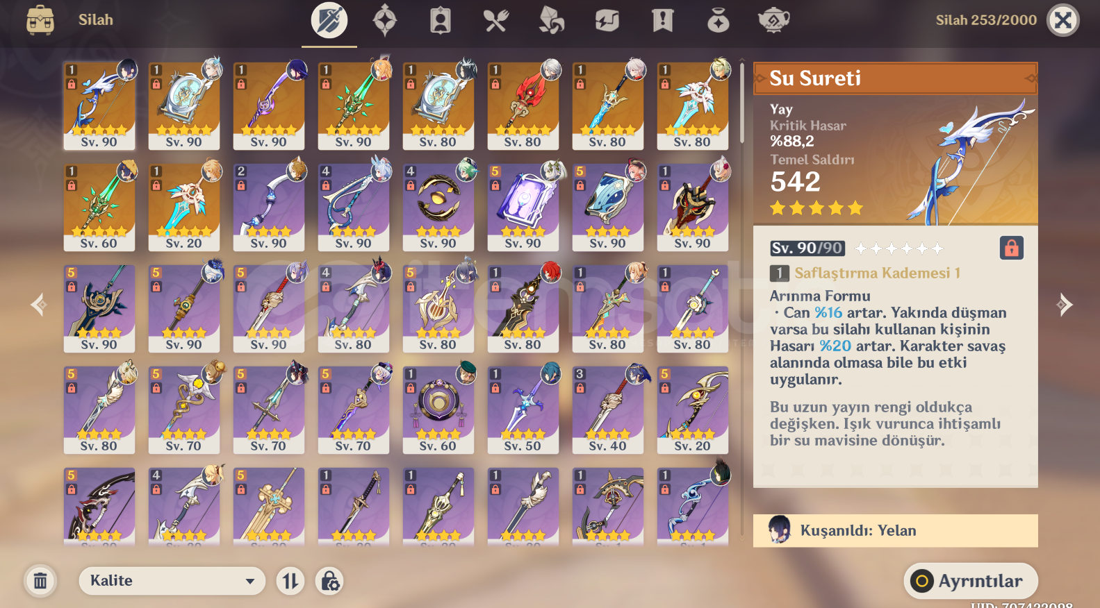 pazarlık yapılır, detayları fotograflardan gorebilirsiniz. RATE UP VAR.c2r1 raidenc1 neuvilettec0 furinac0r1 yelanc0r1 kazuhac0 arlecchinoc0 xilonenc0 laumac0 nahidac0 escoffierc0 sigewinnec3 keqingc1 tighnaric1 monac1 jeanc0 dilucsilah olarak:Su sureti (yelan sig)Hapseden yıldırım (raiden sig)Özgürlük yemini (kazuha sig)Homanin asasi (hu tao sig)Ezeli yeşim kanatlı mızrak 2 taneKutsal ruzgarlarin kayıp duasi 2 taneGoklerin k&...