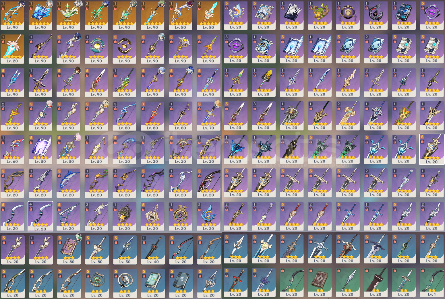 Çok fazla karakter exp, silah exp, artifact exp itemleri vardır. TCG seviye 9dur. Balık tutma sayısı bile 1000den fazladır.