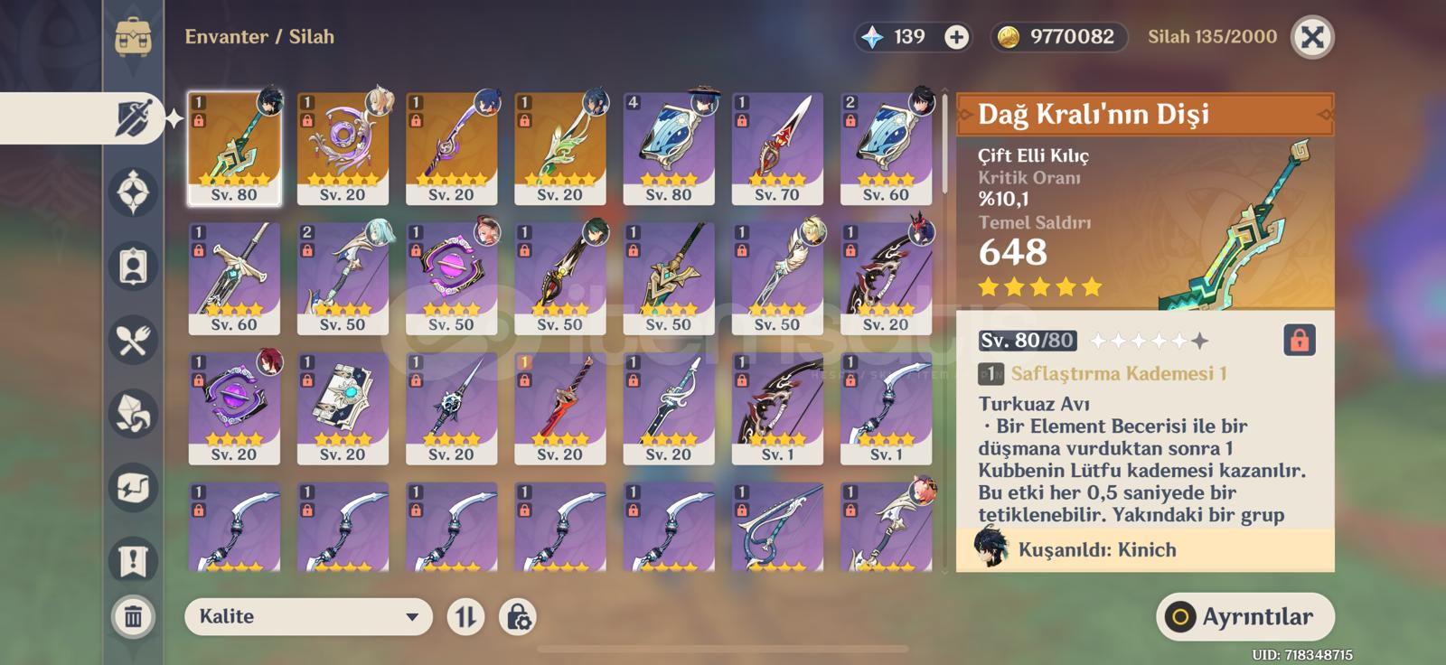 Hesapta 4 tane etkinlik silahı ve toplam 9 tane 5 yıldızlı karakter vardır. Hesap e postası ile beraber verilecektir. Almadan önce yazarsanız sevinirim.