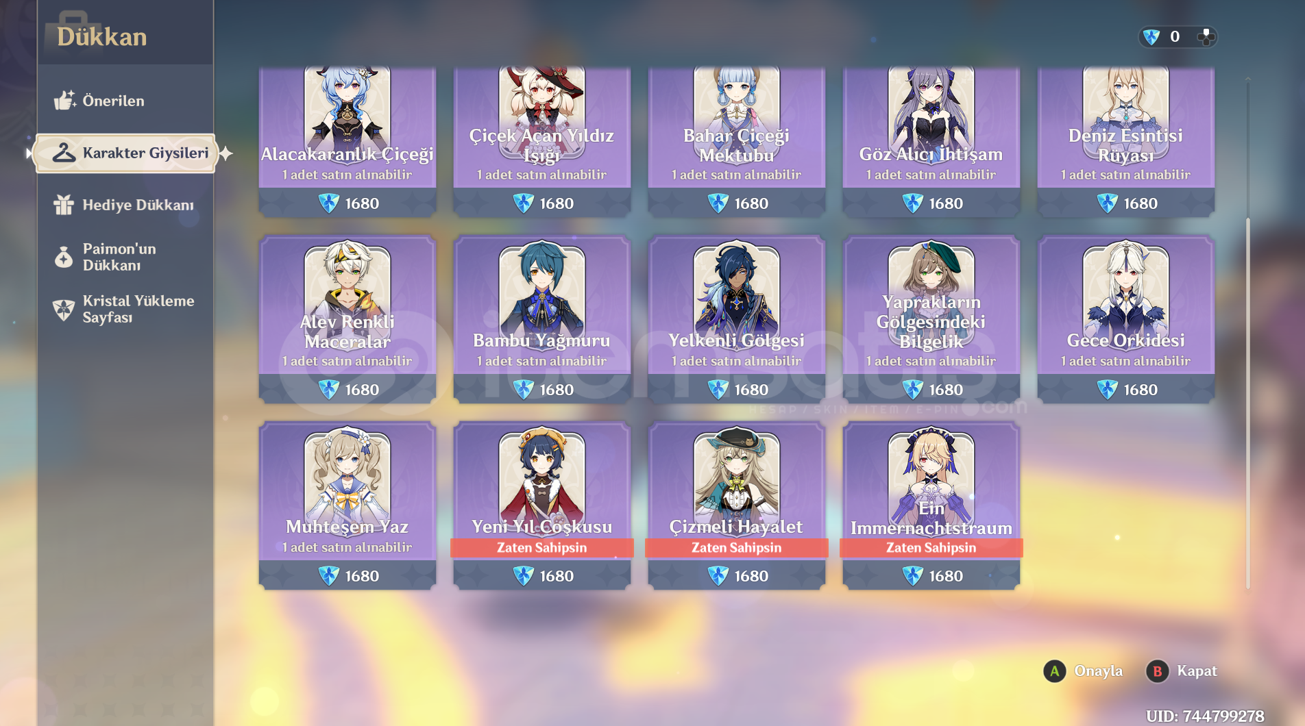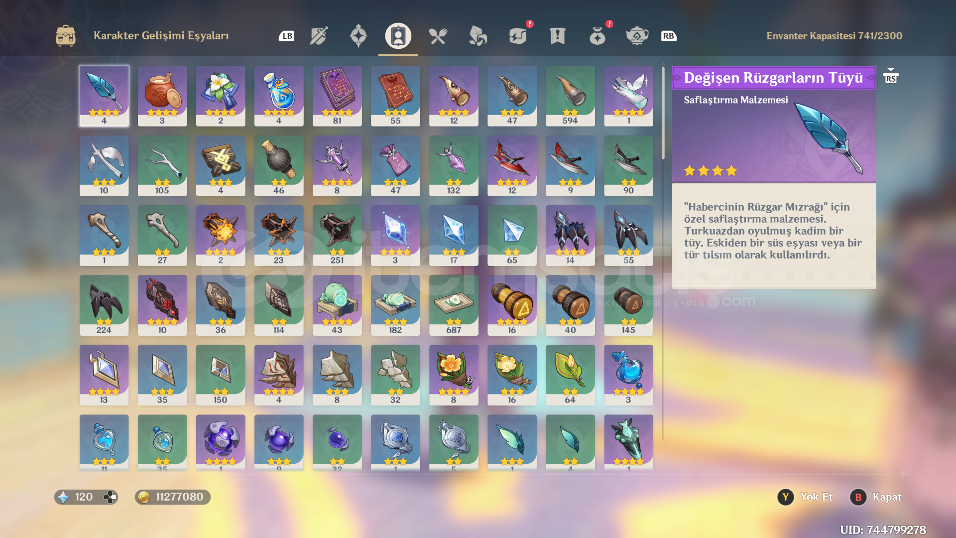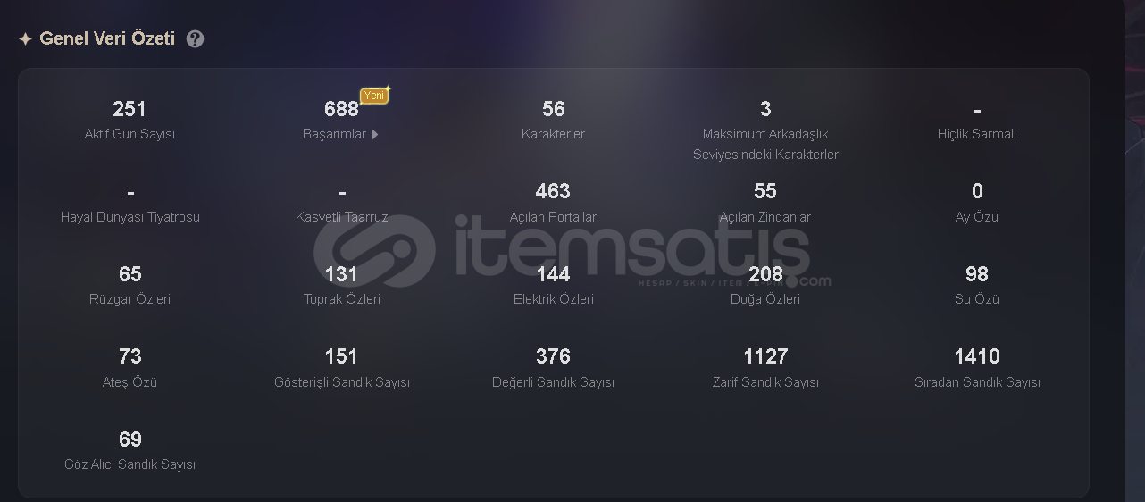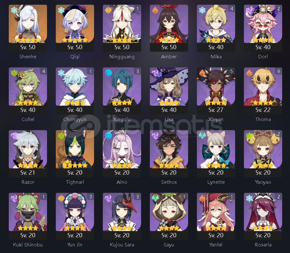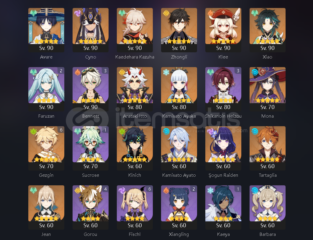 56 karakter var. 65 pity, resin fazla yadigar veya başka bişey kasılabilir, malzemeler de fazla 5 yıldızlı 4 yıldızlı, harita da sadece yeni gelen 2 yer kapalı harici bütün harita açık, hikaye ortalarda fazlaca primo kasılabilir.Soru sorulabilir.Hesabı kendi mailinize geçirirken yardımcı olabilirim.