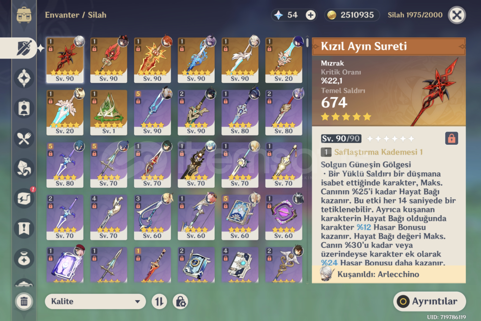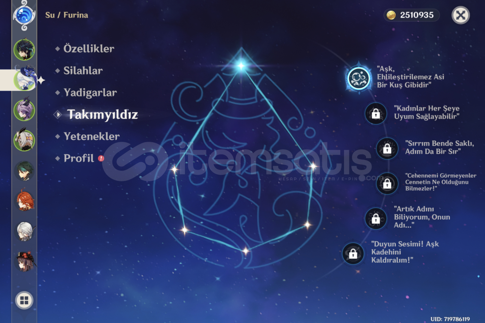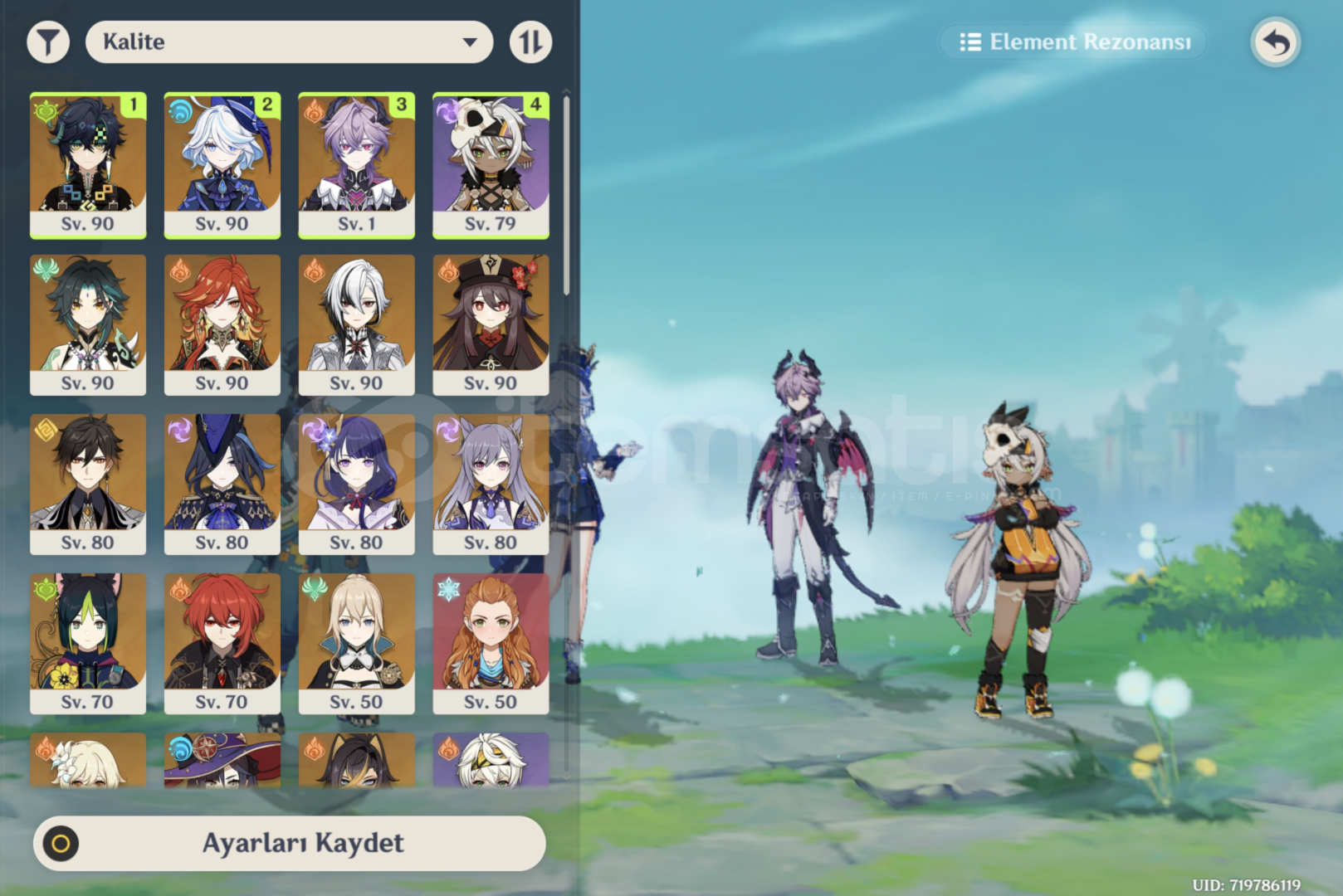 DurinMavuika+bisKinichFurina+bisXiaoArlecchino+bisHu tao+bisZhongliClorindeSogun RaidenKeqinqC1 TighnariDiluc C1JeanAloyMona C1Dehya C1+Favonia kartalıGöklerin omurgasıGöklerin GururuNefer bis-Hakikat Kutusu