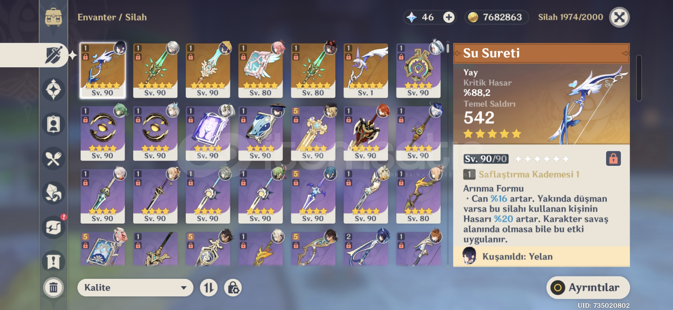 Yelanın su sureti vardir onun harici 90 seviyelerin hepsi kasılmıstır. Eu server