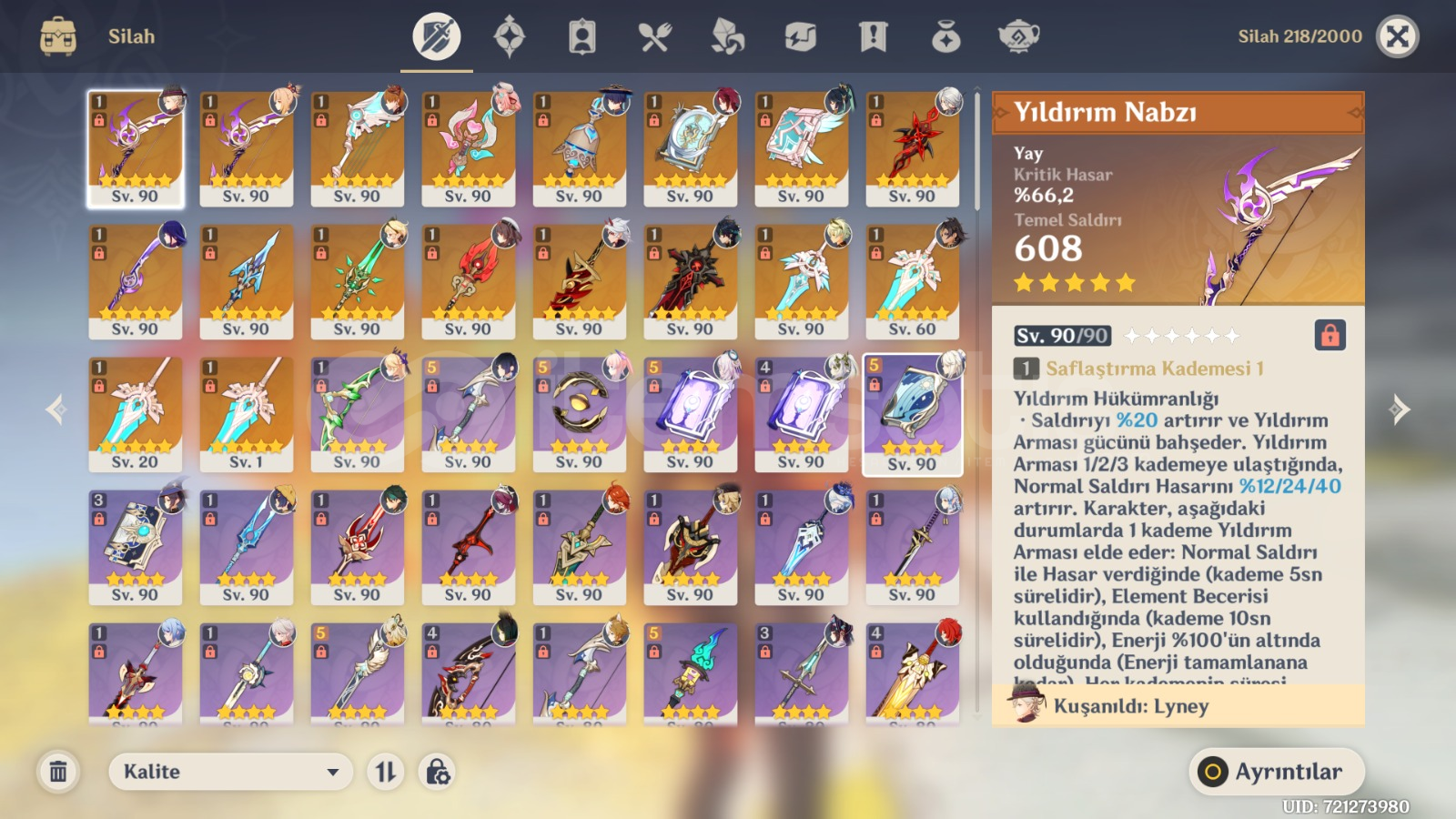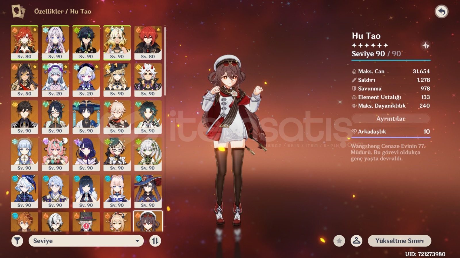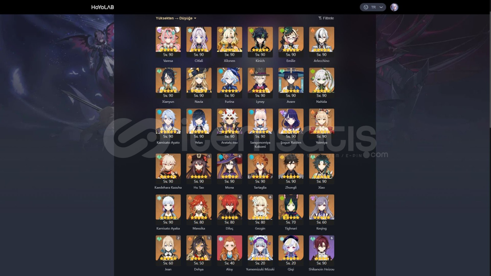 5 yıldır oynuyorum mavuika hariç tüm event karakterlerim 90 lvl ve hepsi kasılı hu tao c1 4* karakterlerimin çoğu c6 her karakterin kendine özel takımı rahatça kurulabilir 2 tane kristalle satın alınan kostumum var ayaka ve hu tao 5 tane savaş bileti silahım var buildlerim oldukça iyi her dps karakterimin 200 üstü dmg hasarı var ve 5* silahlarımda var pity 50