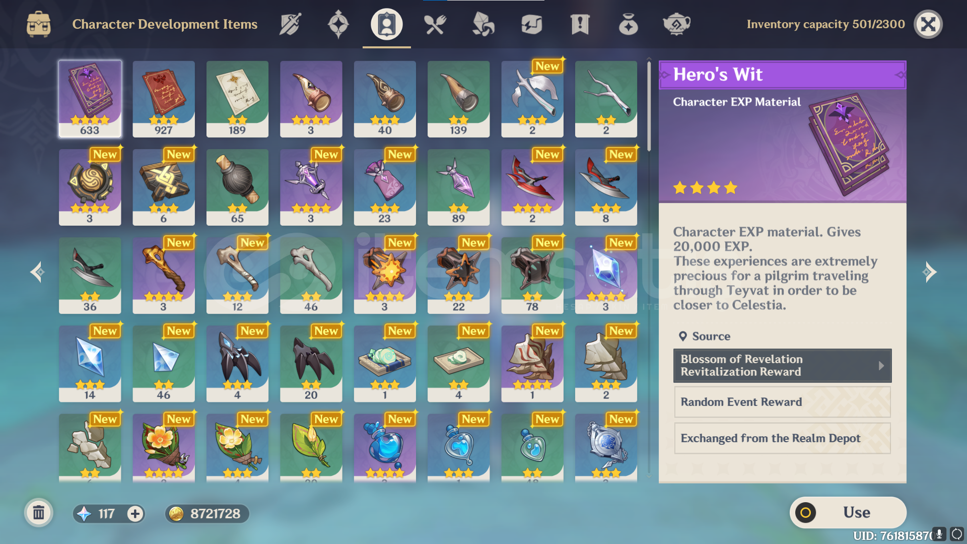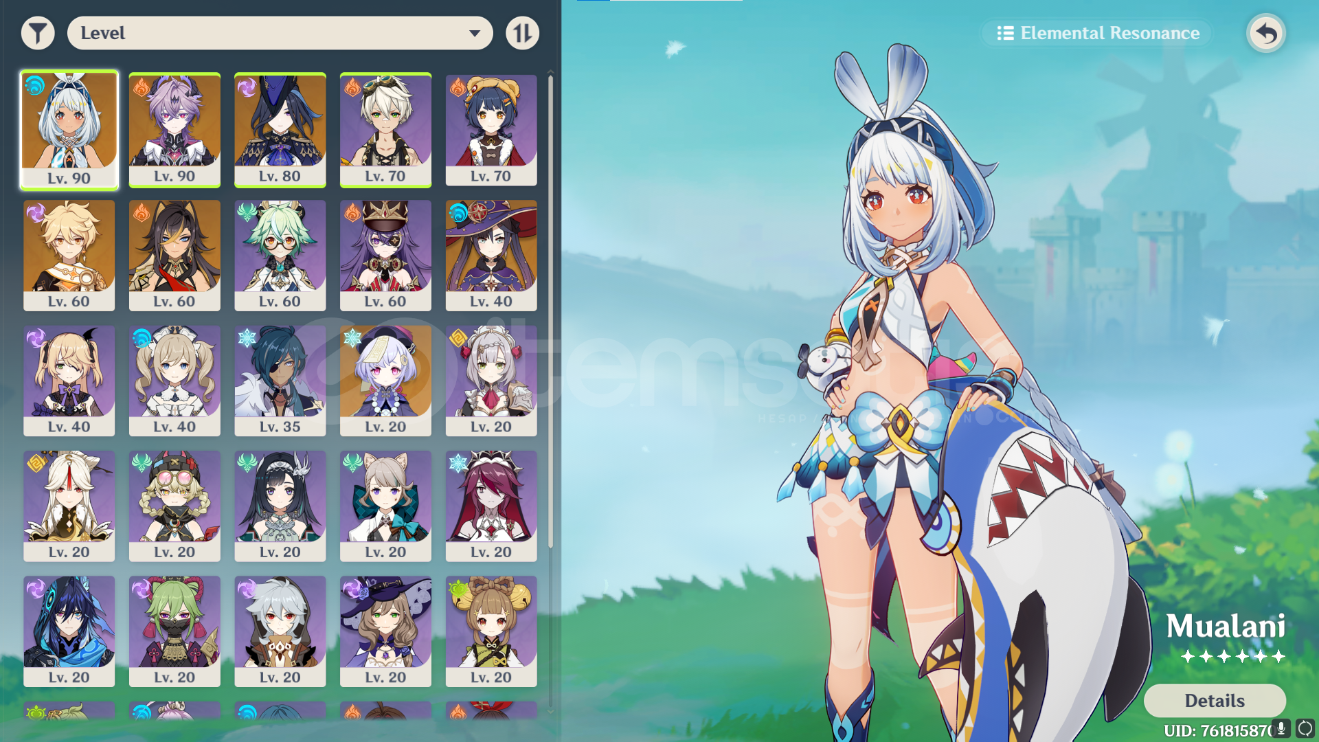 5 yıldızlılar : mualani clorinde durin mona dehya c1 qiqi 2 5 yıldızlı silah. keşif açısından nod krai hepsi 100 natlan 3 yer hariç keşif yapıldı ve dragonspine yapıldı diğer heryer az keşifli. archon questlerde sumerunun başında ve nod krai mevcut olanların hepsi bitti. STANDART PITY 59 KARAKTER PITY 68