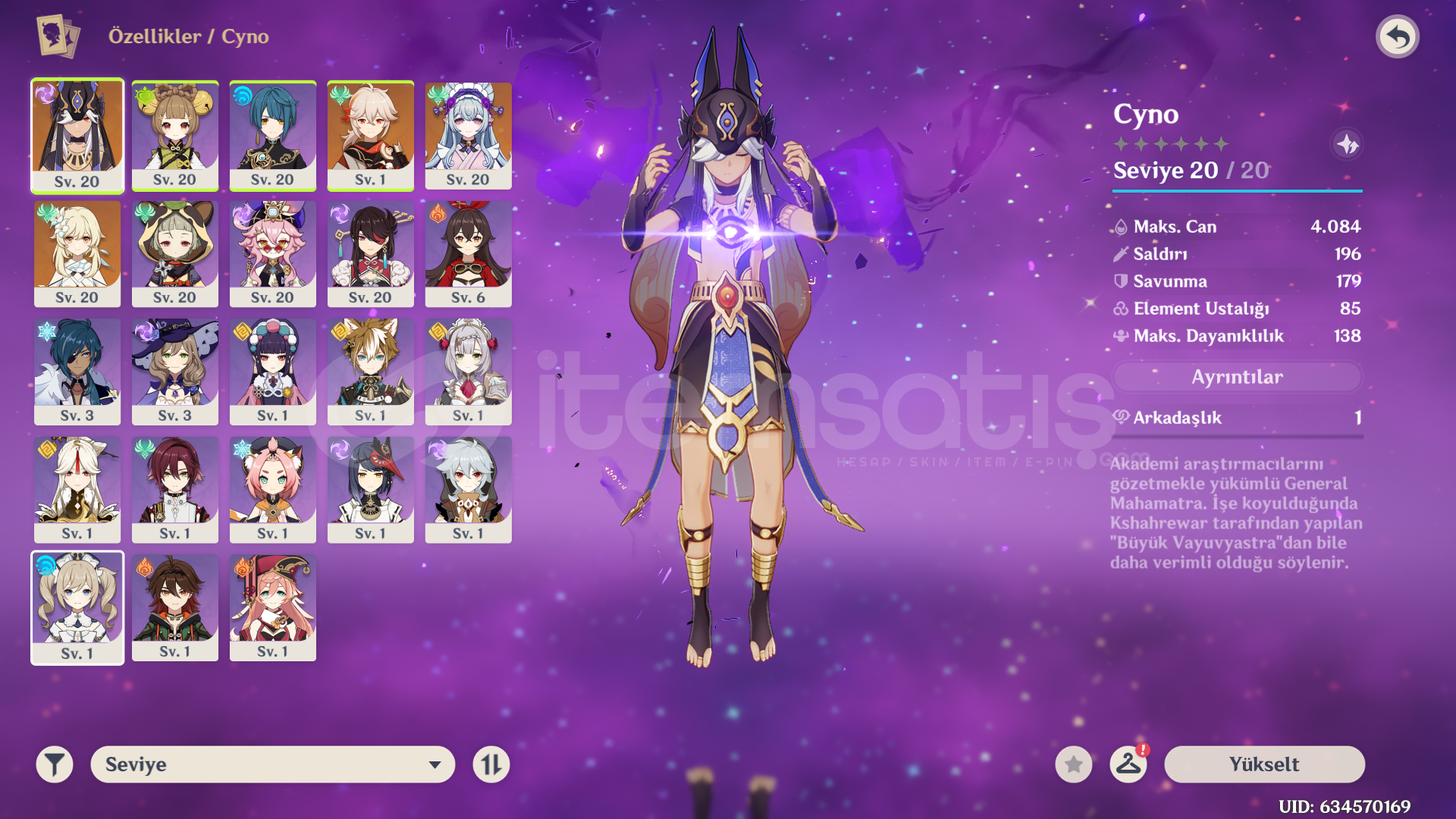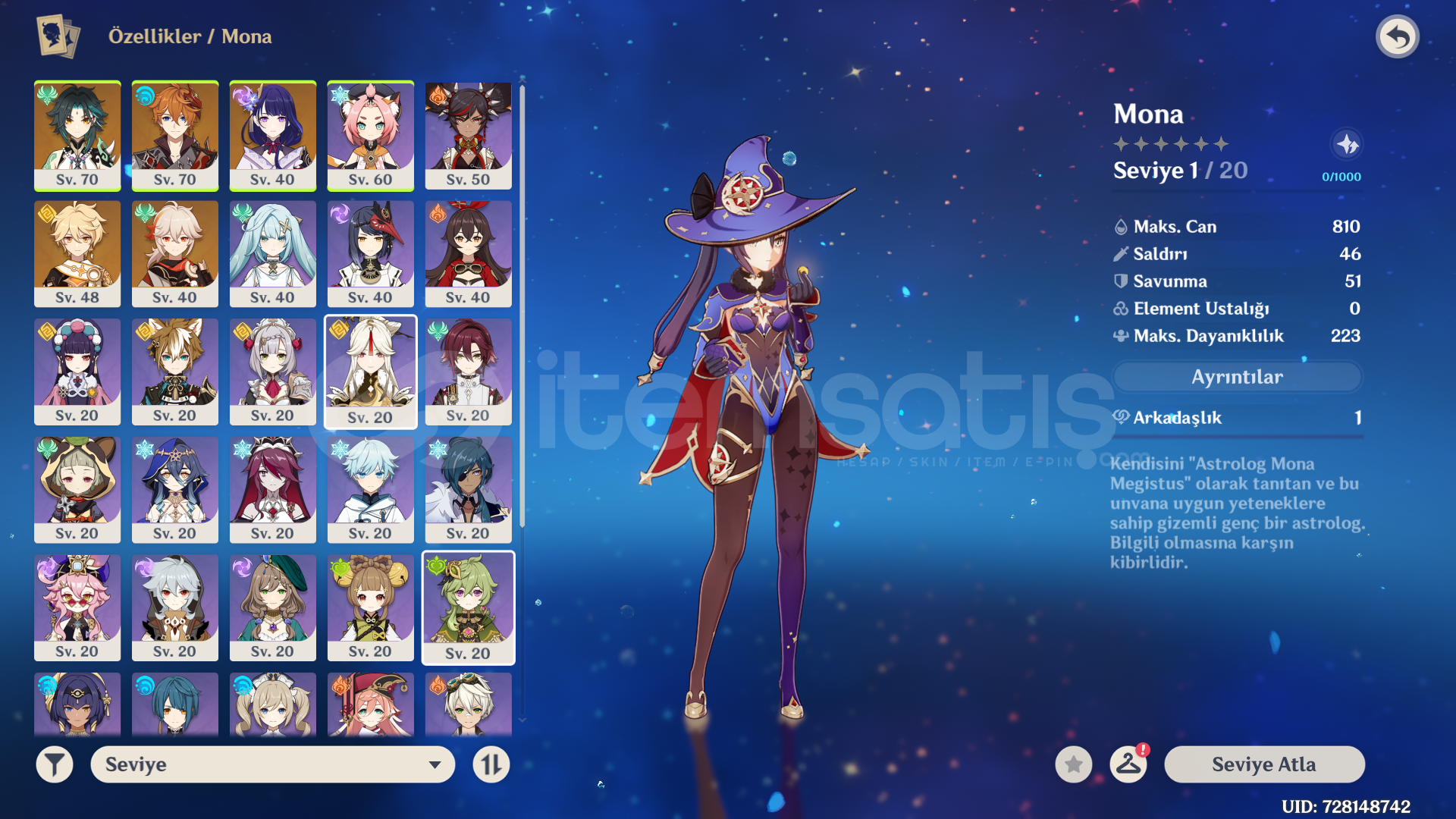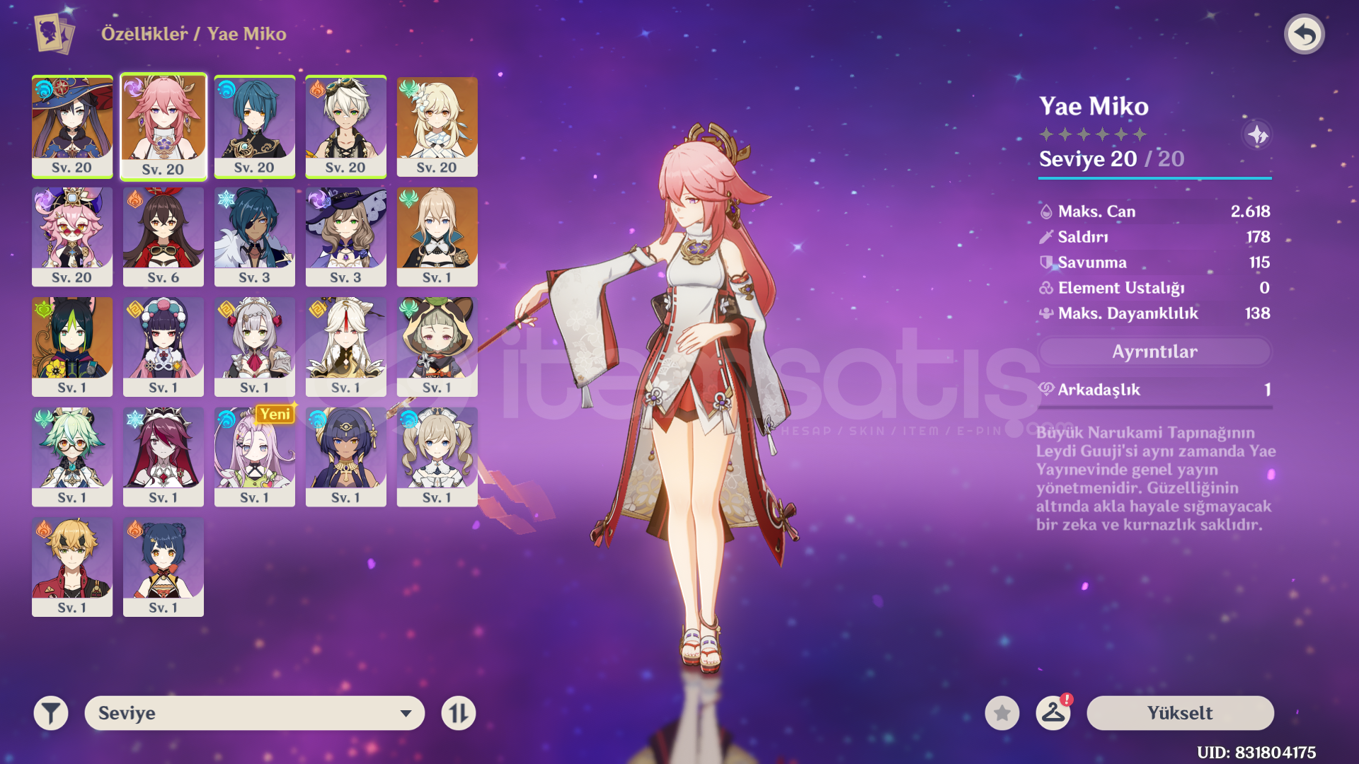 AR37 EU sunucusu Xiao, Raiden, Childe, Kazuha, Mona. Şuana kadar hiç kaybedilmedi. 57 fragile resin bulunuyor. Questler çok ilerletilmedi, rahat kasılır. Haritası da aynı sekilde çok yapılı değil. Mona karakter seçiminden alındı. Asia ve America sunucuları da açık. Asia'da Yae Miko, Jean, Tighnari, Mona; America'da Cyno, Kazuha, Yumemizuki Mizuki mevcut. Elimde fazlalık hesap olduğu ve kullanmadığım için satıyorum. Herhangi bir sorunuz olursa iletişime geçebilirsiniz.