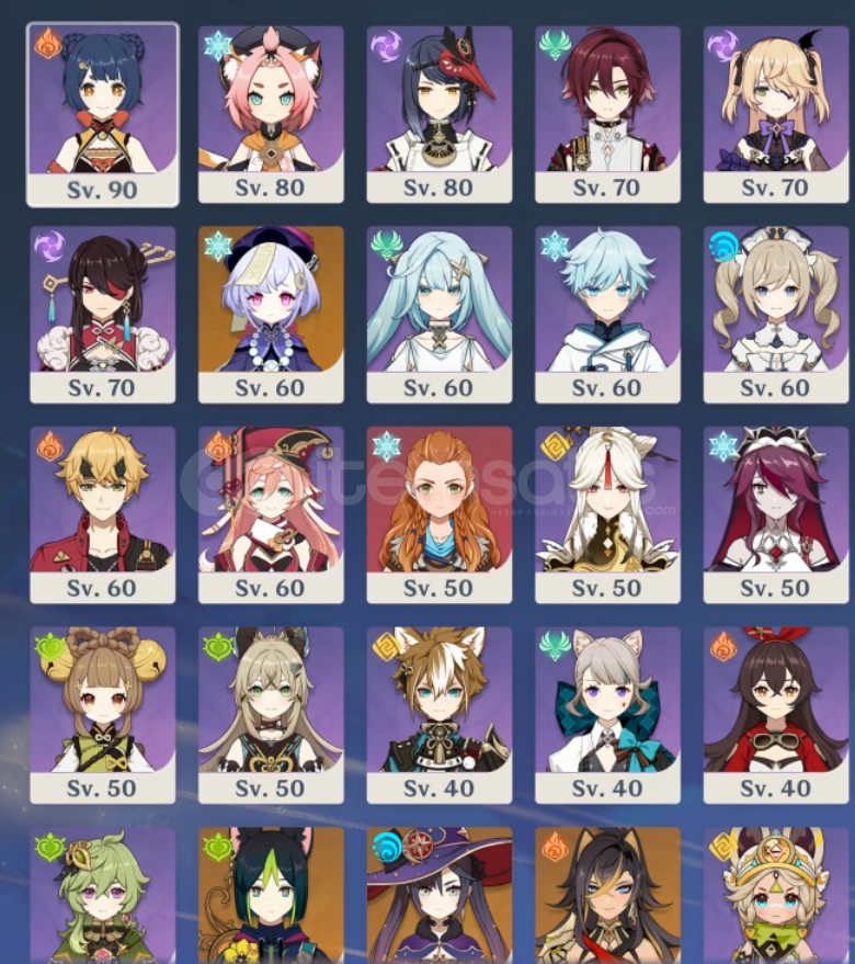 -Bennet - Sucrose - Diona - Xiangling -Rosaria -Yun Jin -Sayu -Layla - Dori - Ningguang - Chongyun-Xinqiu