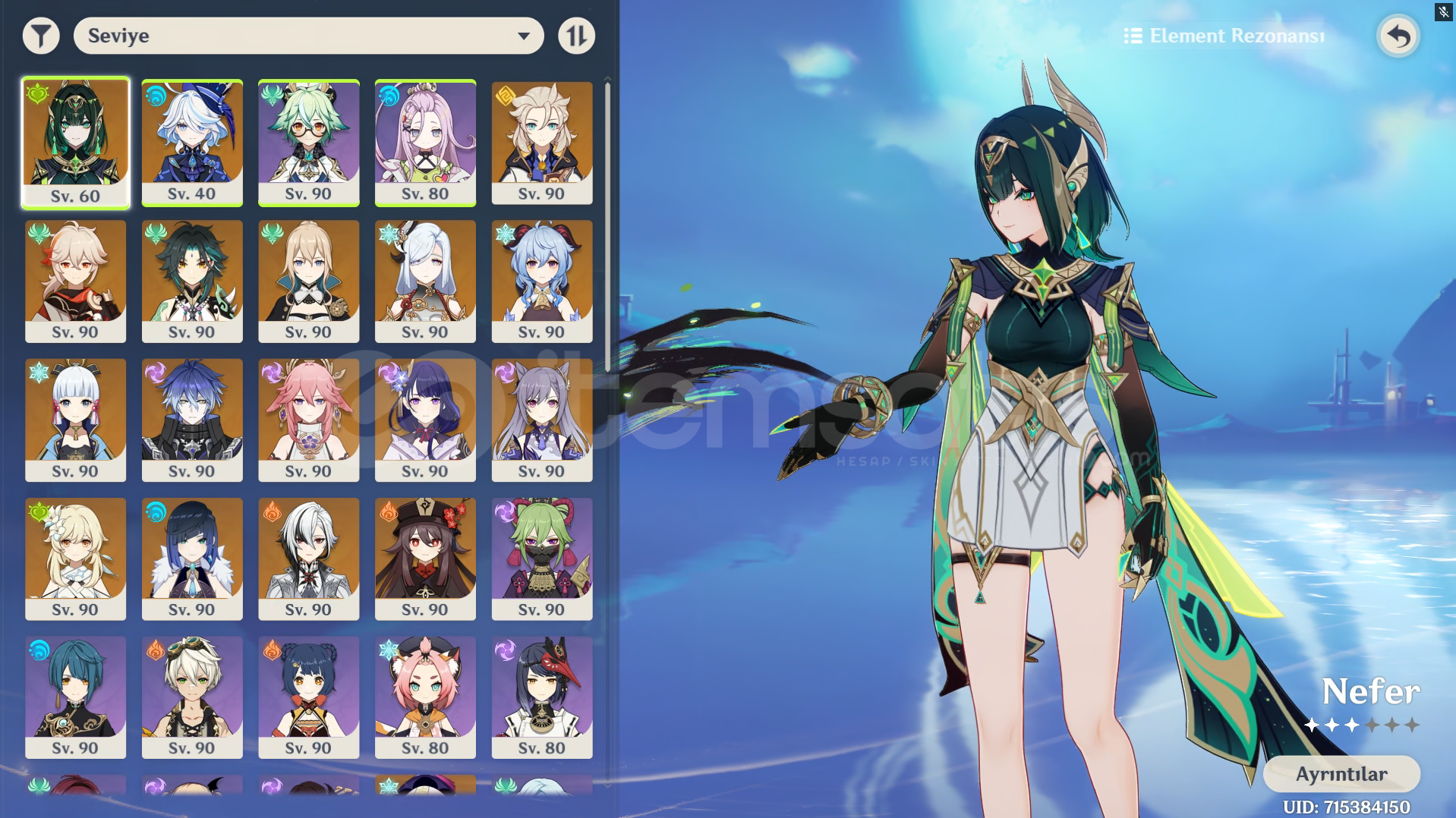 Oyunu bırakıyorum o yüzden satıyorum.Nefer ve furina çıkardım yeni yamada.Hesap içeriği şöyle:-Flins C2-Nefer-Furina-Ganyu + Bis-Ayaka C1-Shenhe C1 olacack-Yae Miko-Raiden Shogun + R3 Catch-Hu Tao-Arlechino-Yelan-Kazuha-Xiao-AlbedoStandart 5*-Jean C5-Keqinq C3-Qiqi C3-Dehya C2-Tighnari C1-MonaSilahlar-Amosun Yayı - Göklerin Liri -Göklerin Atlası - Kızıl Kum Asası - Göklerin Gururu - Kızıl...