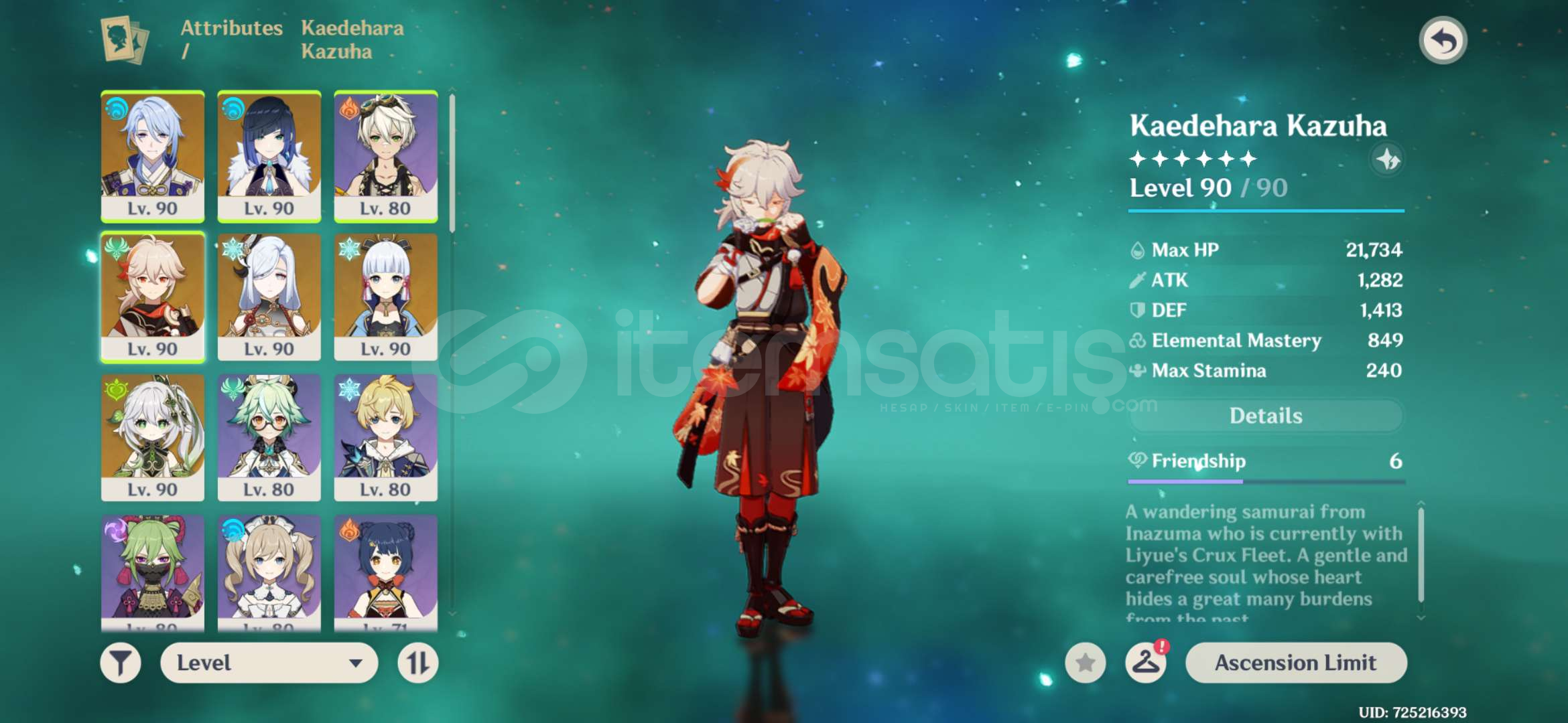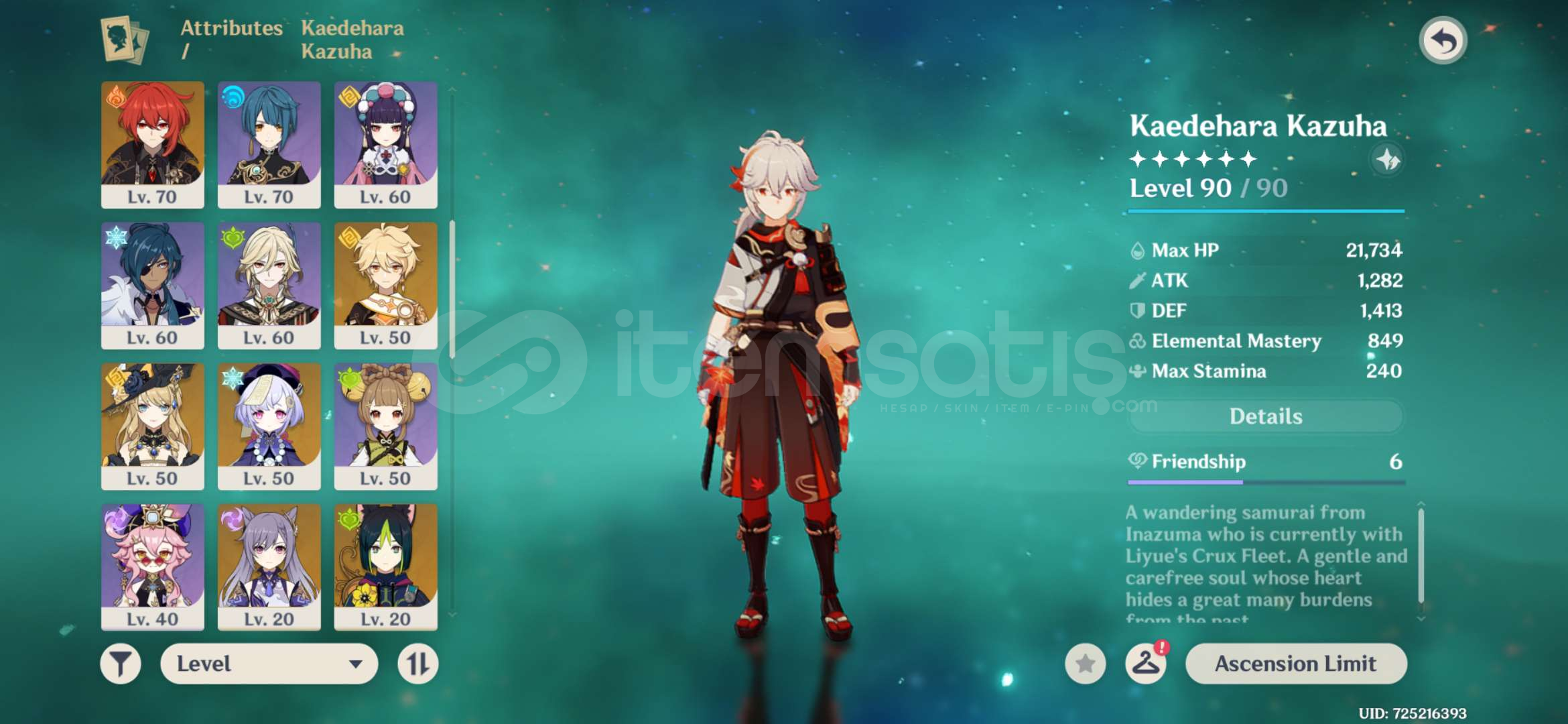 HESABI SATIN ALDIĞINIZDA MAIL DEĞIŞIMI YAPILIR Eu Server Ar 56 Ayato Ayaka YelanShenhe KazuhaNahida Navia C6 Sucrose,Mika,Xingqui,Dori ve Diona C5 Heizou C4 Barbara C3 Layla ve Razor C2 Thoma C1 Shinobu,Xianling,Yun Jin,Qiqi,YaoYao,Sayu,Rosaria,Kujou Sara,Fischl,Collei,Candace ce Xinyan 4 tane 5* silah varHesap Biraz Eski Olduğu için yeni yerler açılmamış görevler yapılmamıştır rahat primo kasabilirsiniz hesaptaki ç...