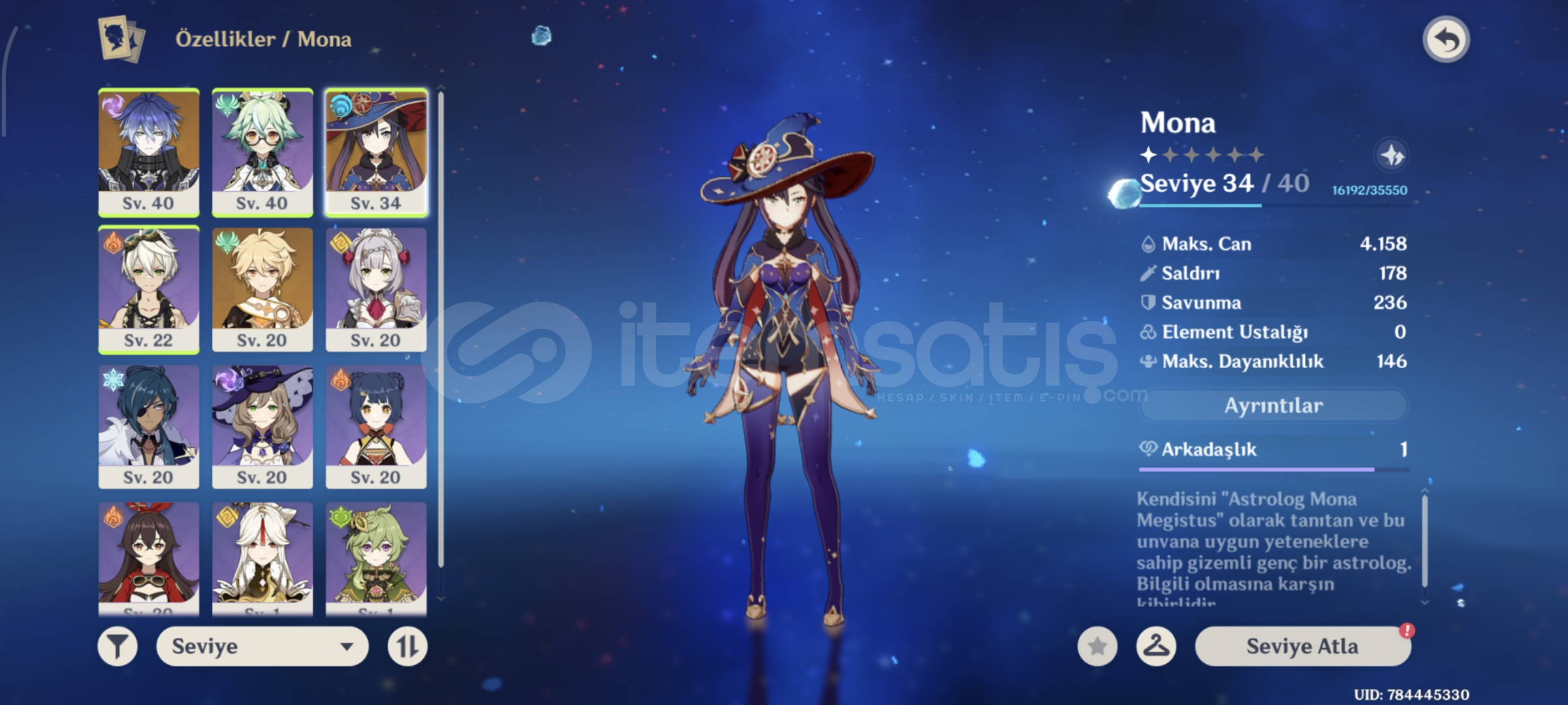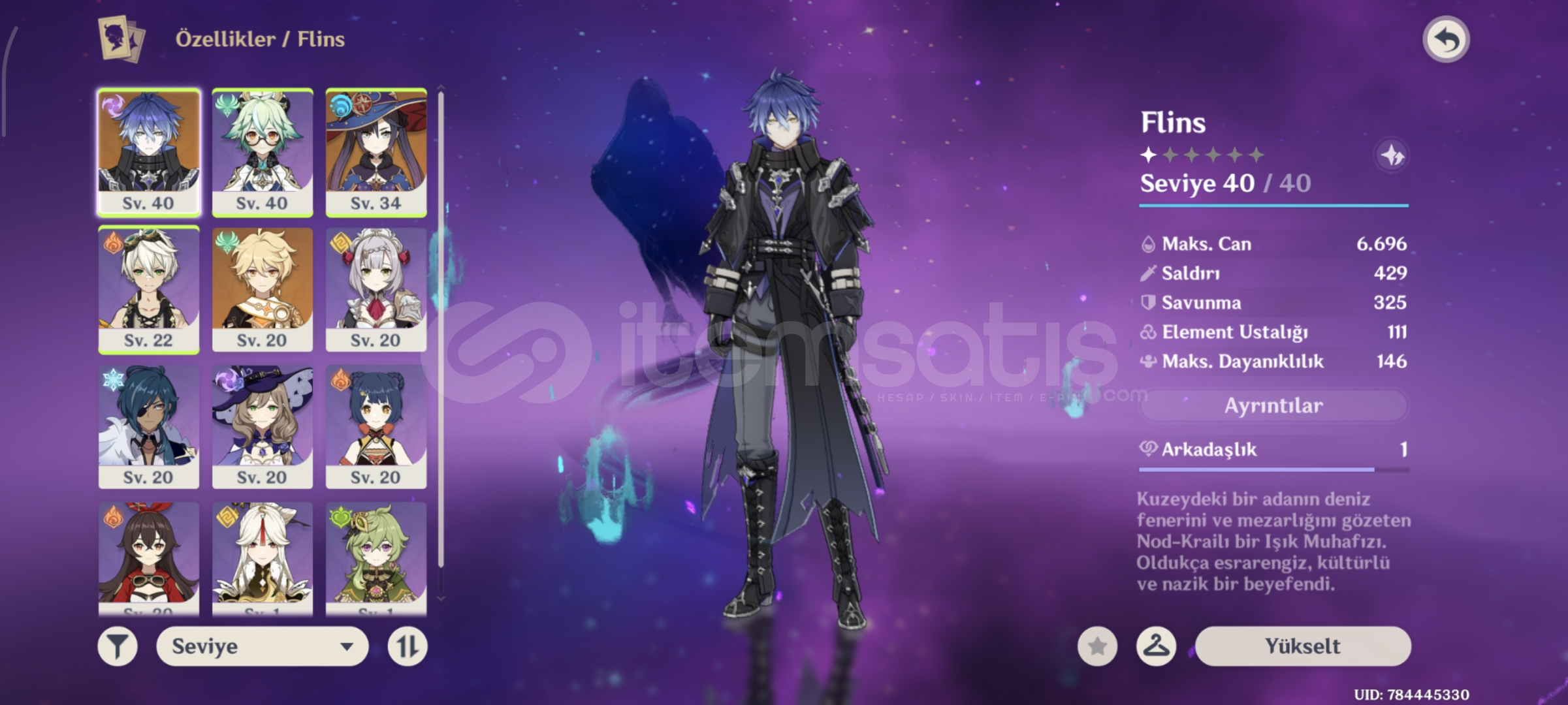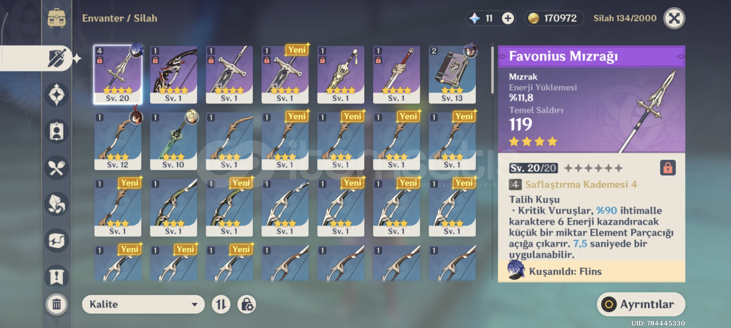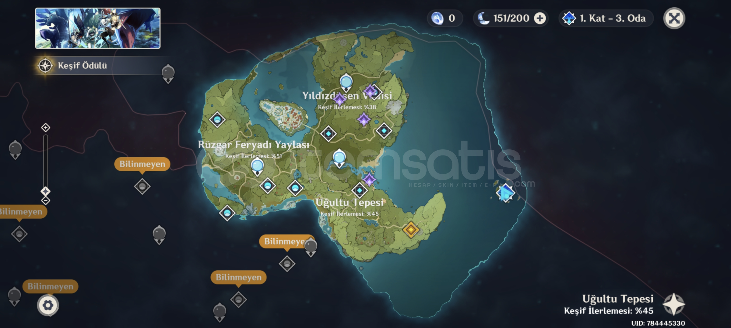 Flins ve C1 Mona başlangıç hesabı.Resimdeki mondstadt bölgeleri hariç hiçbir bölge açılmadı.Keşif yüzdeleri resimde bulunmaktadır.Mail ile beraber teslim edilecektir.Hesaba Noelle bannerından Mona çıktı ardından normal bannerın ilk 10lusunda Flins çıktı. Uidsinde bulunan 444ten dolayı şanslı bir hesap olduğunu düşünüyorum.Sorunuz v...