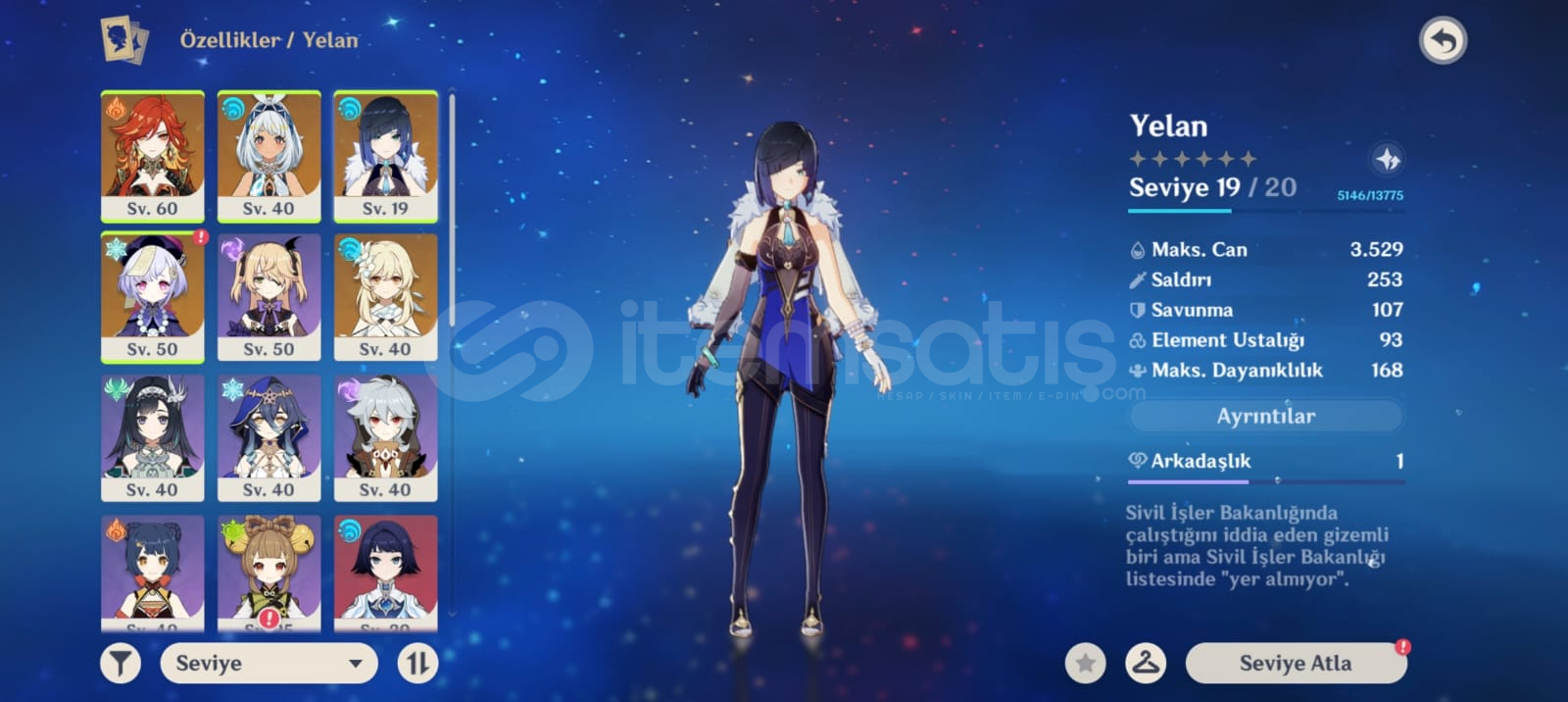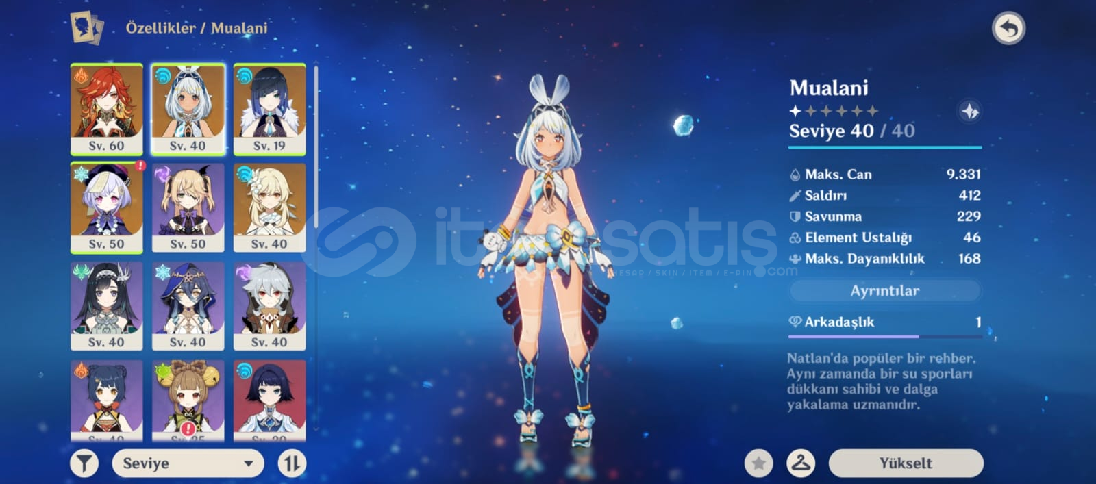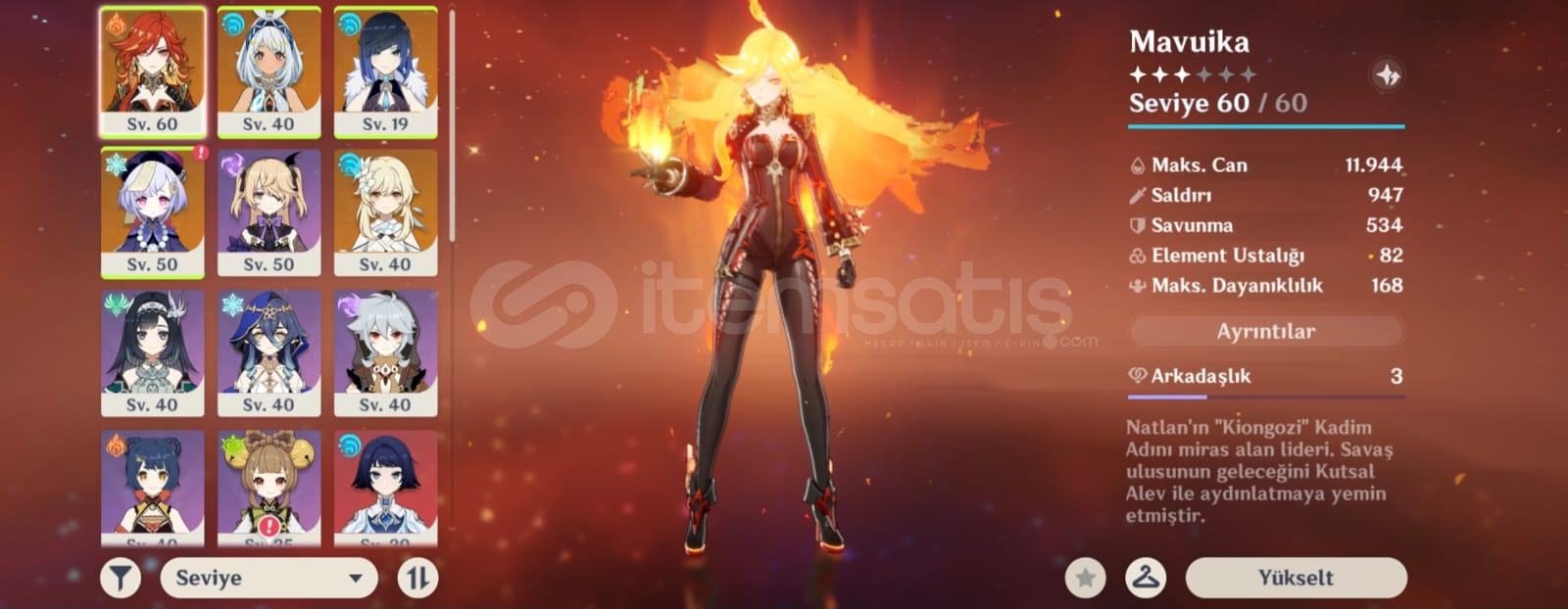 Macera Seviyesi (AR): 355 Yıldız Karakterler: Mavuika (Ateş Arkonu), Mualani, Yelan, Qiqi.Sunucu: Europe (Avrupa)Bağlantı Durumu: Sadece E-posta (Satış anında tamamen devredilecektir). Sosyal medya/PSN bağlantısı yoktur. Güvenli hesap. Harita keşfi belirli bir seviyeye getirilmiştir, karakterlerin materyalleri toplanmış ve oynamaya hazır durumdadır. Görevlerin bir kısmı yapıldığ...