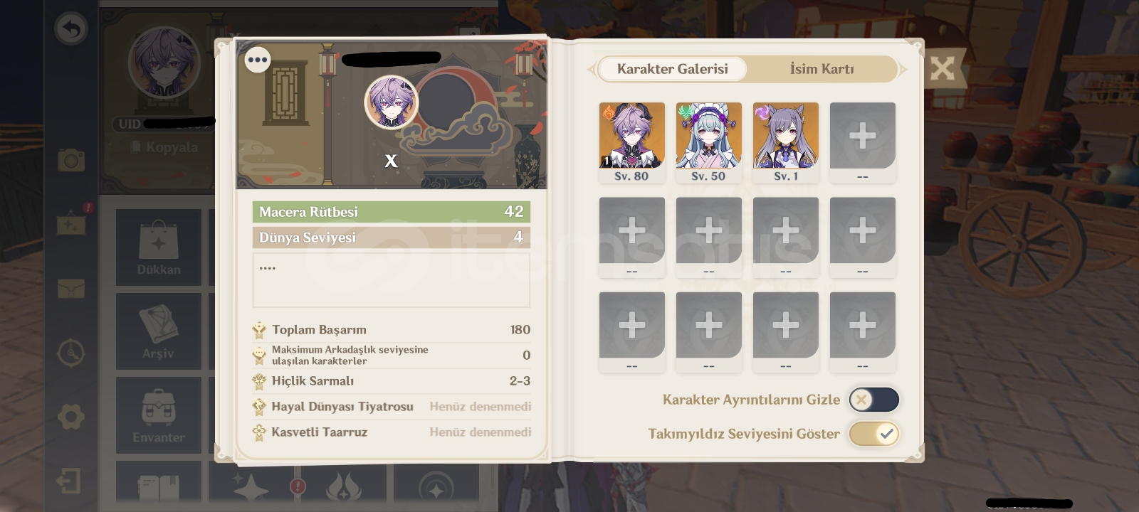 Welkin MoonC1 Durin Mizuki Keqing C3 Faruzan C2 Bennet ve dahası ✨Monstadt Dragonspine Hiisi Adası %100✨Monstadt Liyue yediler heykeli %100✨Haritanın geri kalanı açık değil✨Monstadt ve Liyue şehir itibarı %100 (Monstadt tüm questler yapıldı Liyuenin questlerinin yarısından fazlası yapılmadı)✨Event silahı bulunur (R5) Mail değişimi yapılacaktır