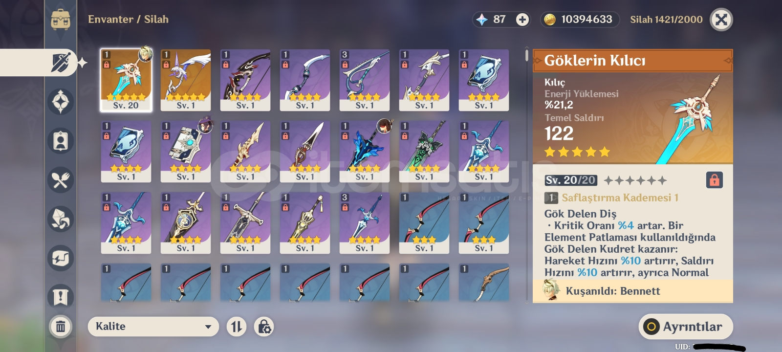 Hesap içerisinde Welkin Moon bulunmaktadır.Avrupa sunucusundadır.Ar 43Limited 5✨ ---- FurinaStandart 5 ✨ ---- MonaFotoğraftaki 5 yıldızlı silahlar dahildir.Harita bomboştur Dragonspine ve Lisha %100 onun dışında monstadt %70+ geri kalan yerlere girilmemiştir.Mail değişimi yapılacaktır.