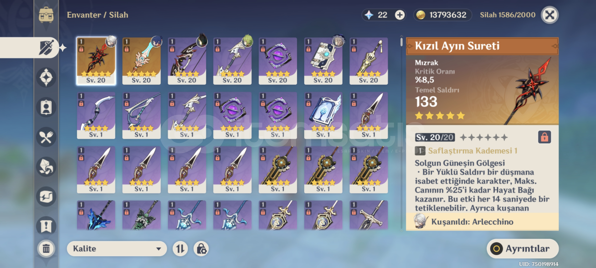 HESAPTA ARLECHİNO C1+SİLAHI MEVCUT 76 TANE KIRILGAN REÇİNE DURUYOR KOLAYCA KASILIR