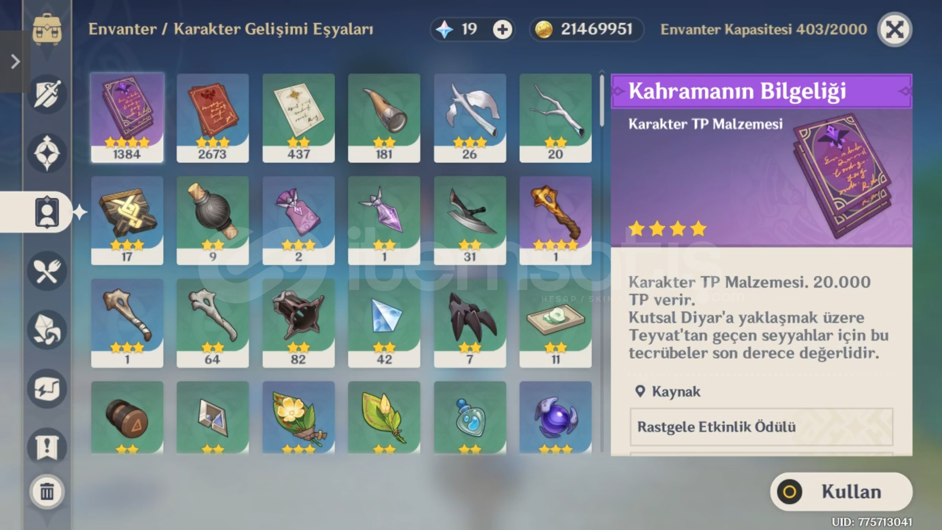 Fazlasiyla Seviye itemleri vardir