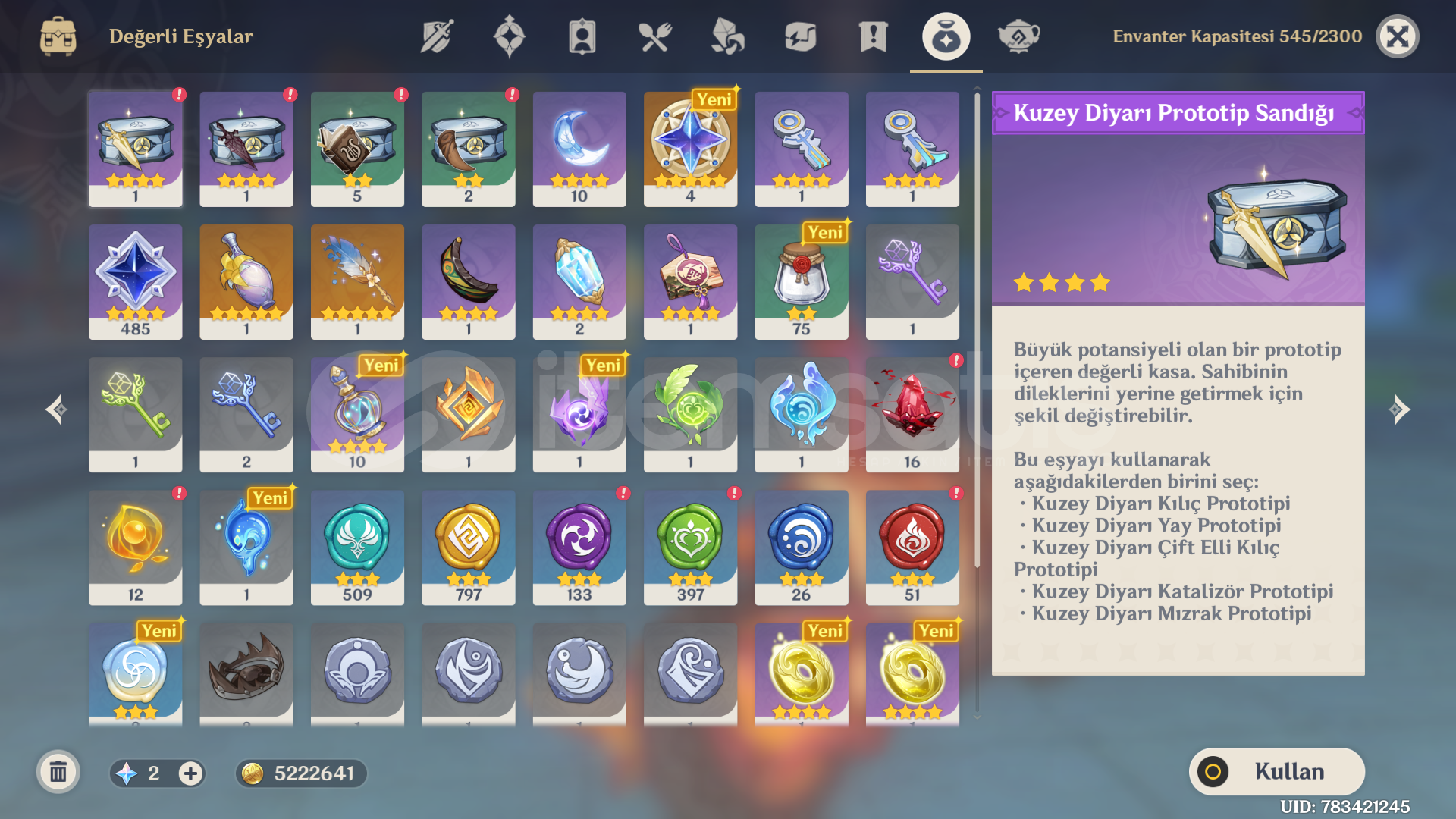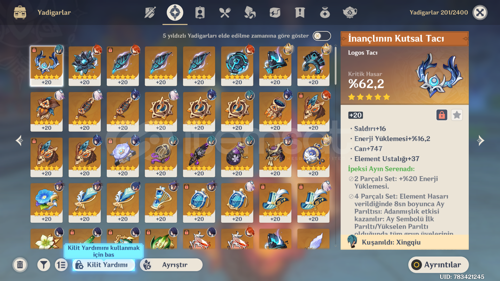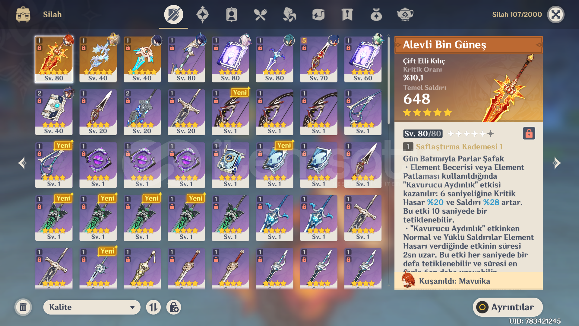 Hesapta 5 tane 5 yıldız ve 90 lvl xinqiu vardır.